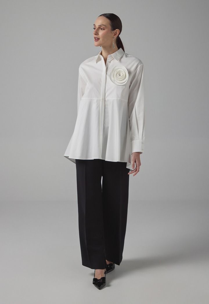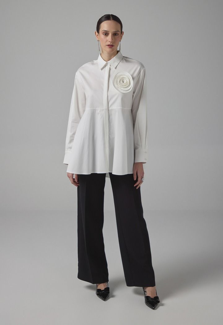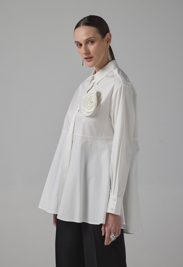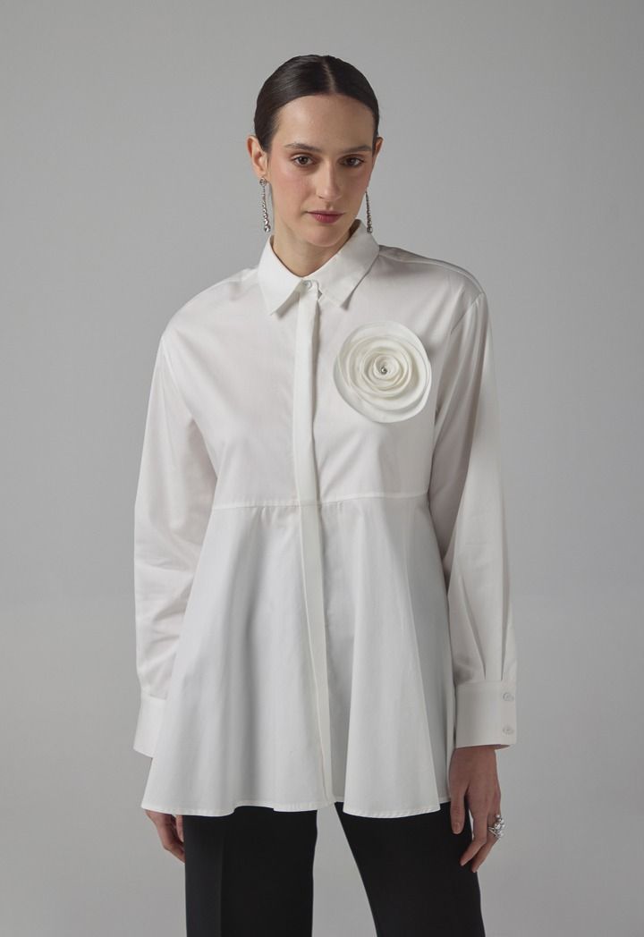 3D Flowers Patch Long Sleeve Basic Shirt |