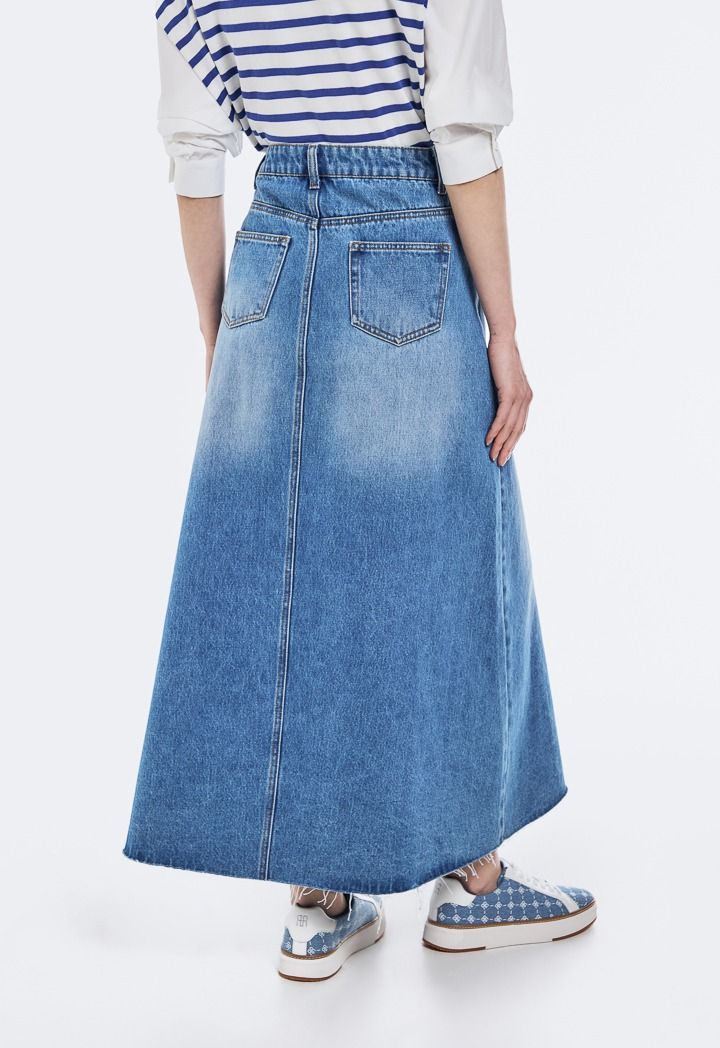 Design: Solid, A-Line, Denim, Side Pockets, Front Slit