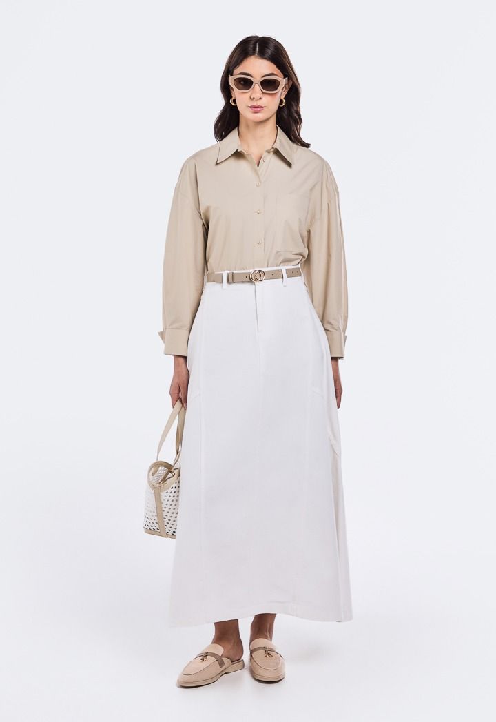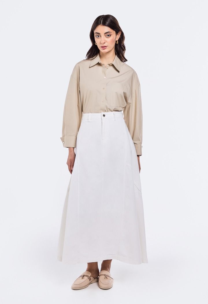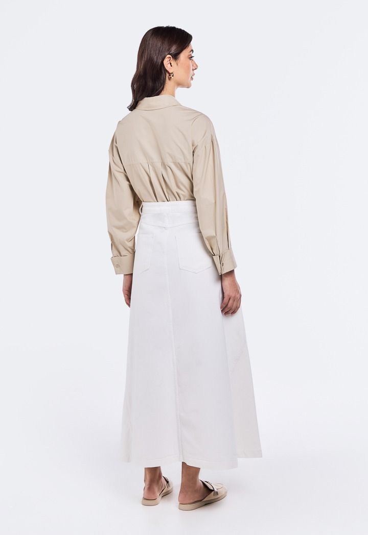 Simple sophistication defines this skirt. It is crafted with a denim finish. Perfect for year-round wear, this skirt elevates your look for any occasion.