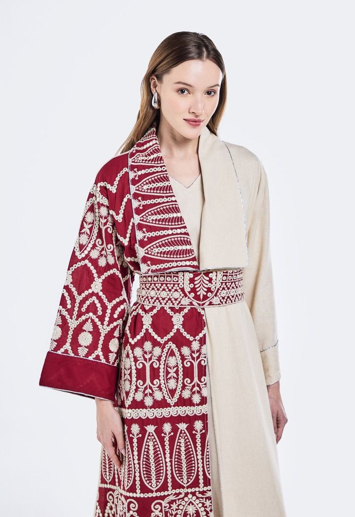 Abaya and Embroidered Belted Dress Set (2PCS) |
