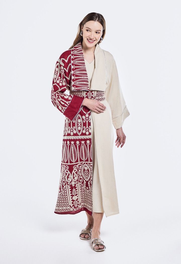Abaya and Embroidered Belted Dress Set (2PCS)