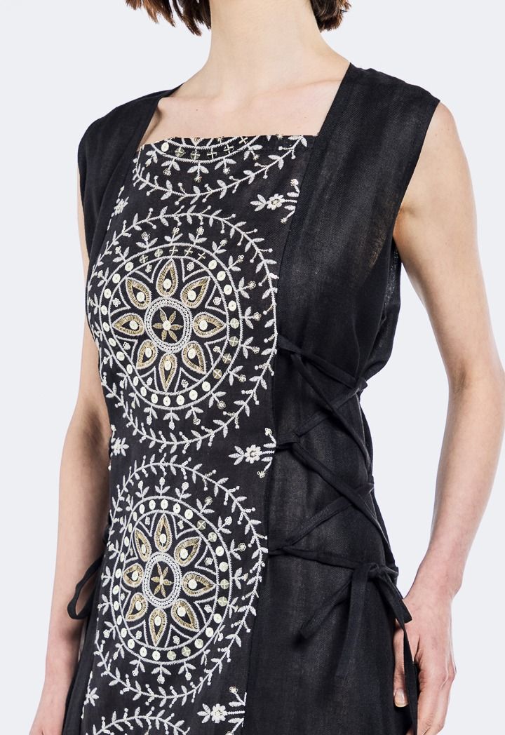 Design: Embriodered, Sequins, Embroidered Inner Dress With Waist Ties