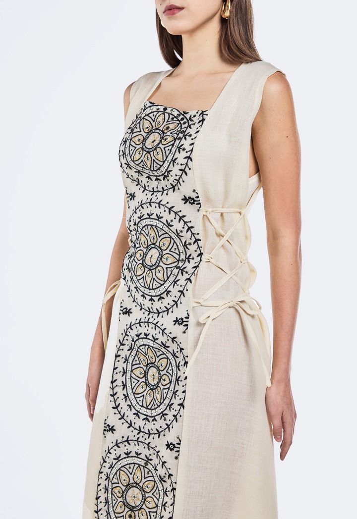 Design: Embriodered, Sequins, Embroidered Inner Dress With Waist Ties