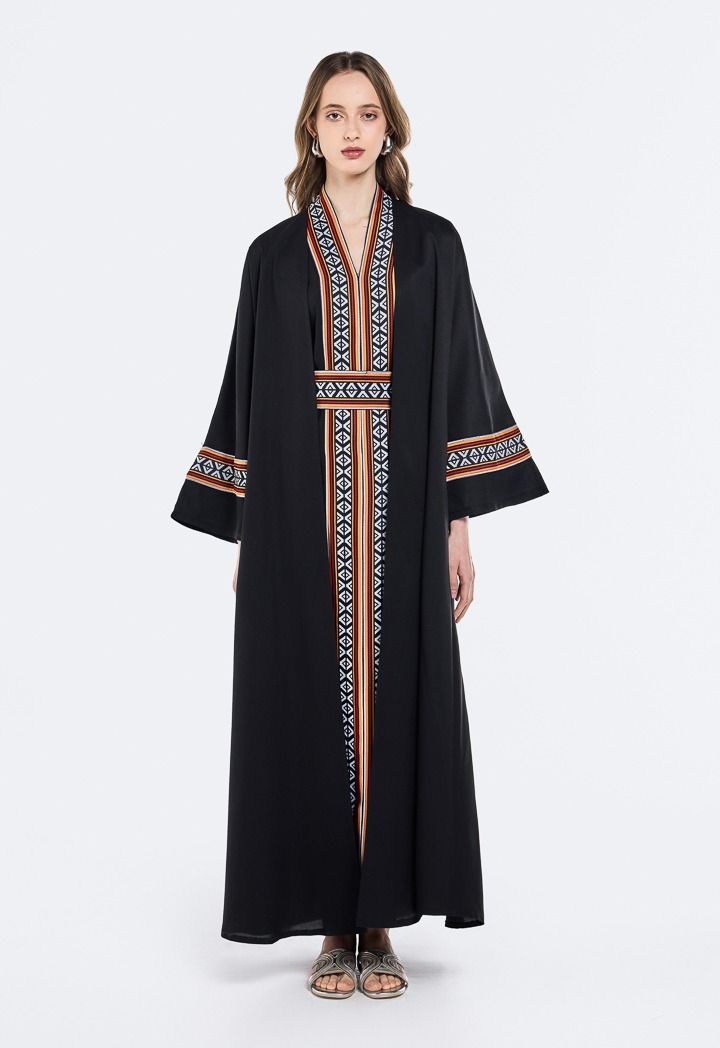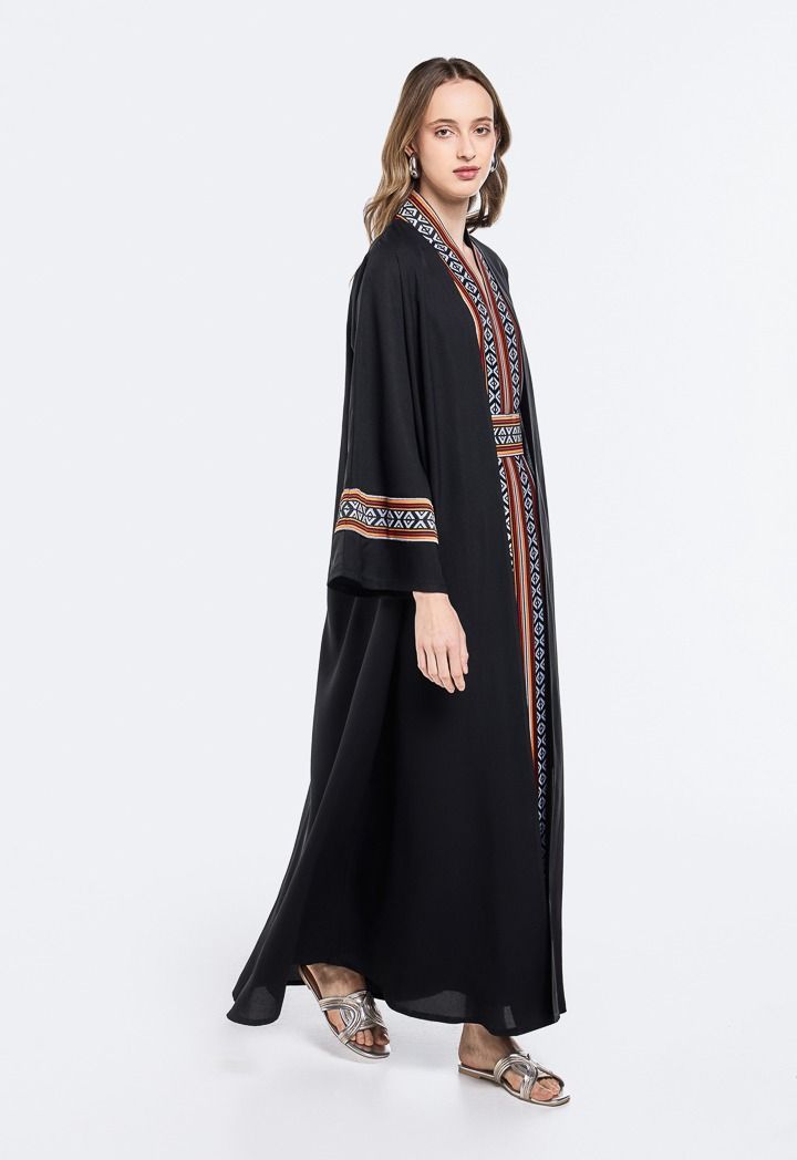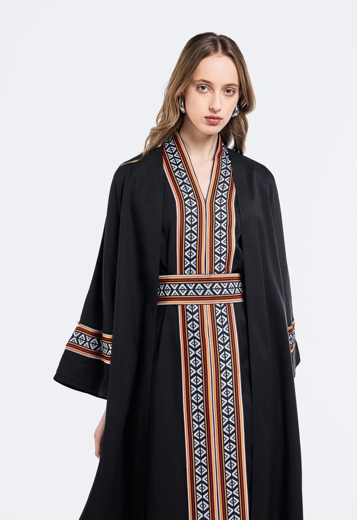 Shine this Ramadan with an embroidered abaya and a sleeveless inner dress, a design that blends elegance and comfort for a standout look during the holy month.