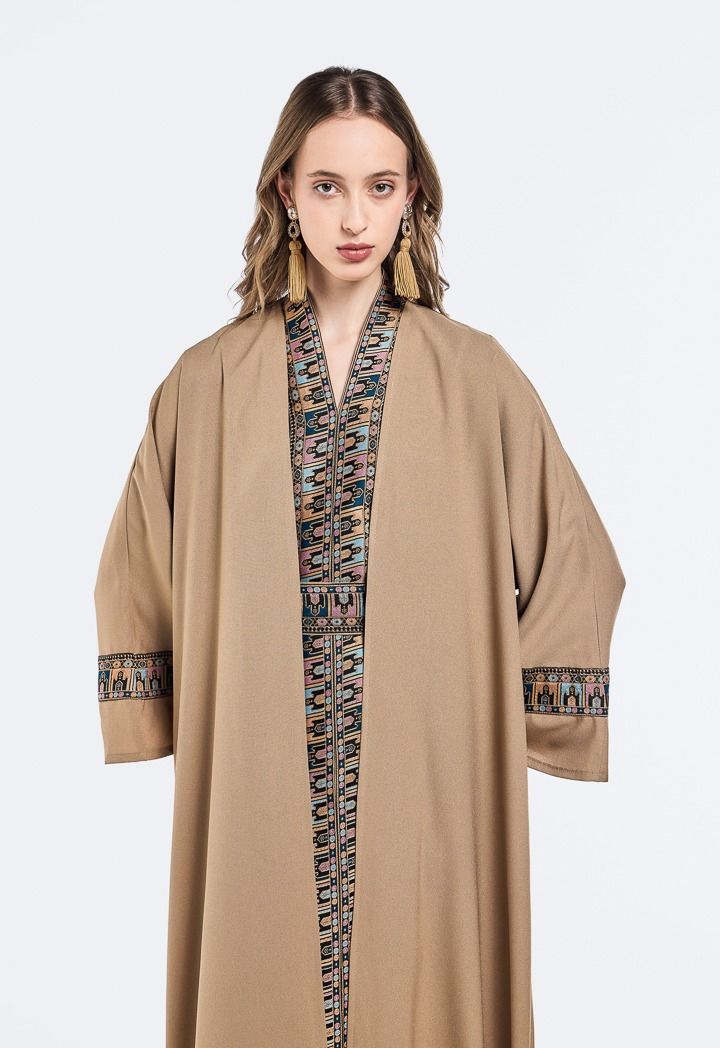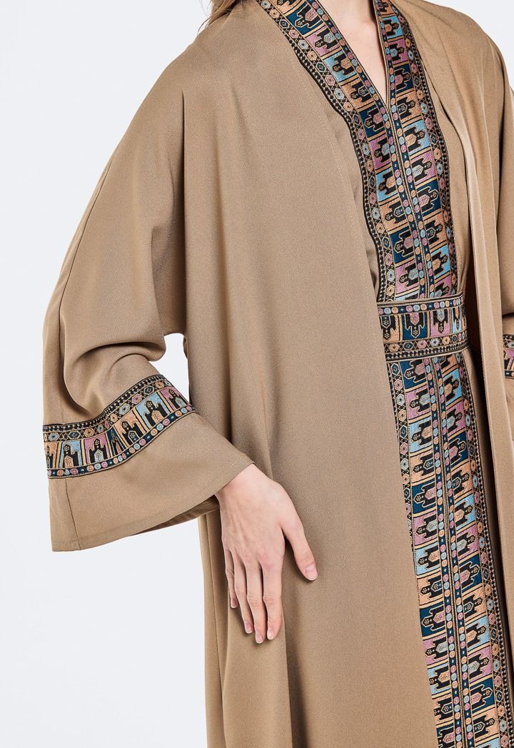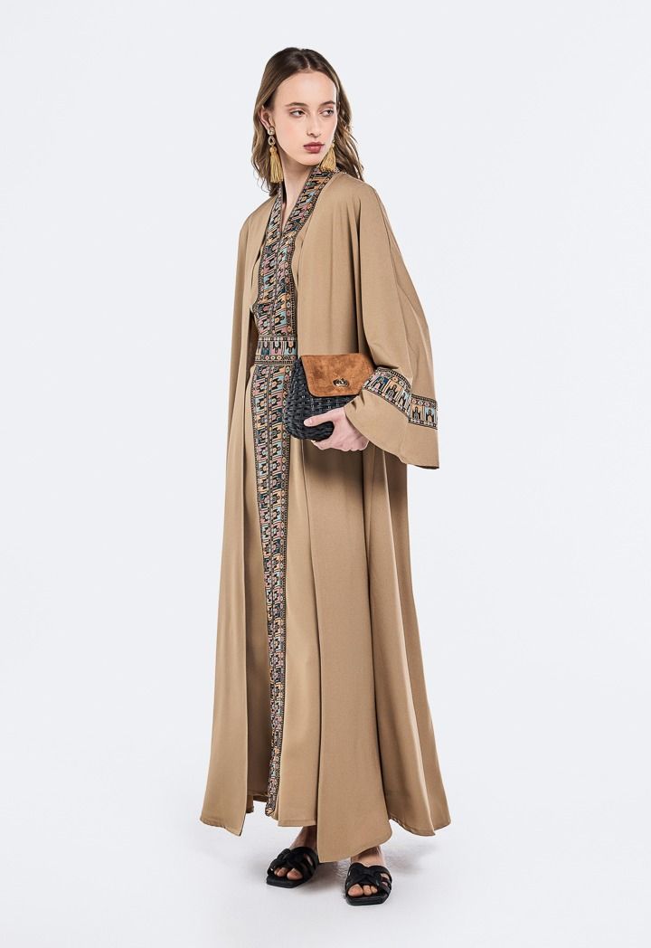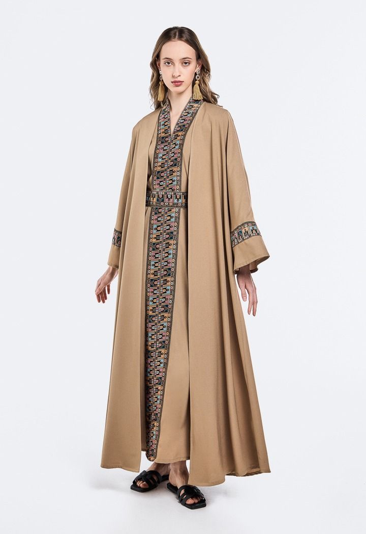 Shine this Ramadan with an embroidered abaya and a sleeveless inner dress, a design that blends elegance and comfort for a standout look during the holy month.