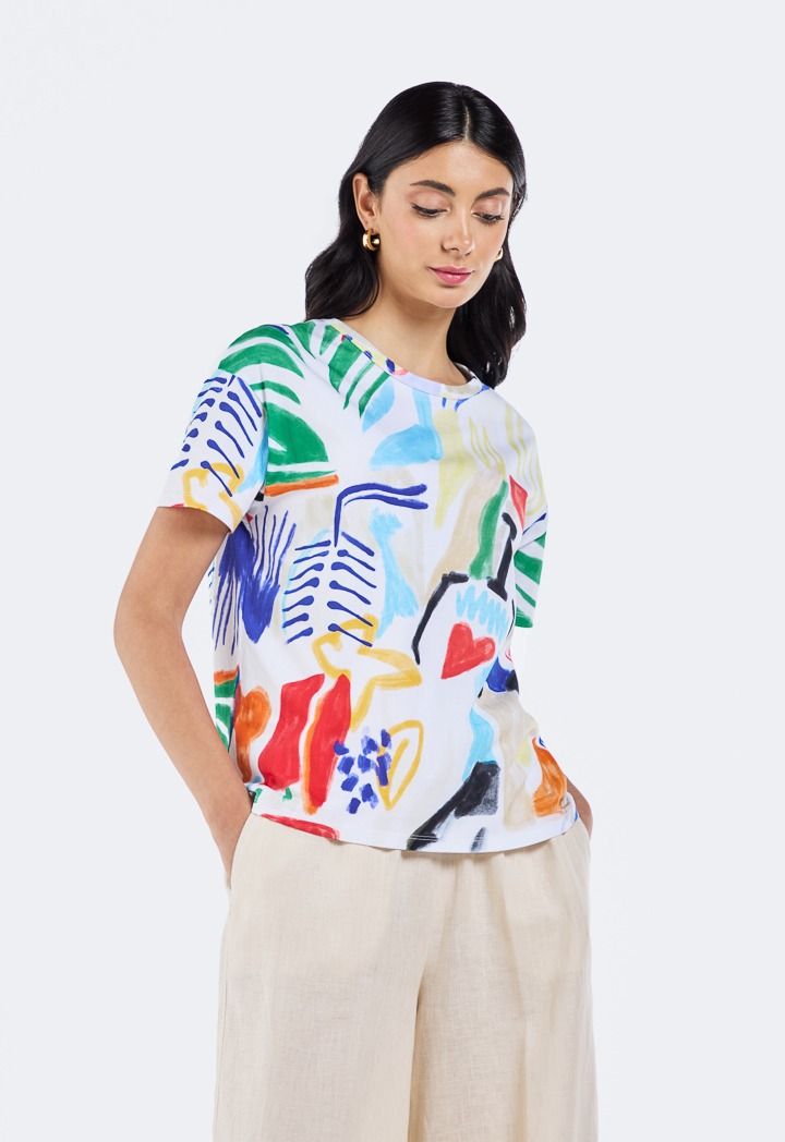 Feel relaxed all day in this T-shirt enriched by an all-over print. The key features are the round neck and short sleeves. This T-shirt ensures lasting comfort.