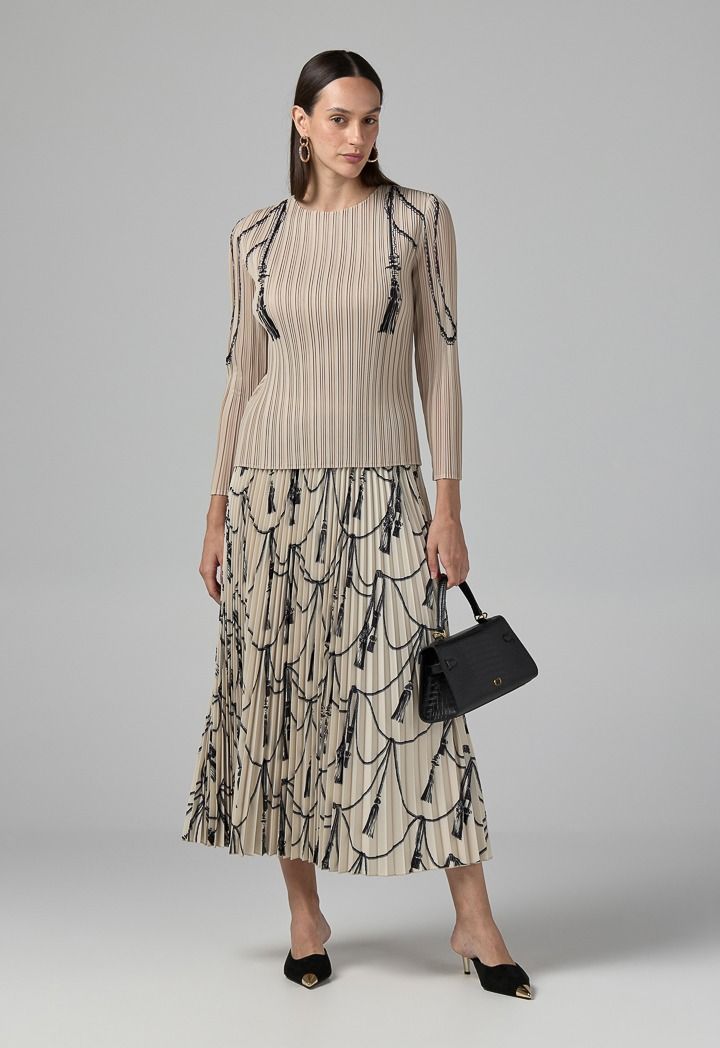Be unique with your style in a Printed pleated skirt adding a fabulous touch to your look.