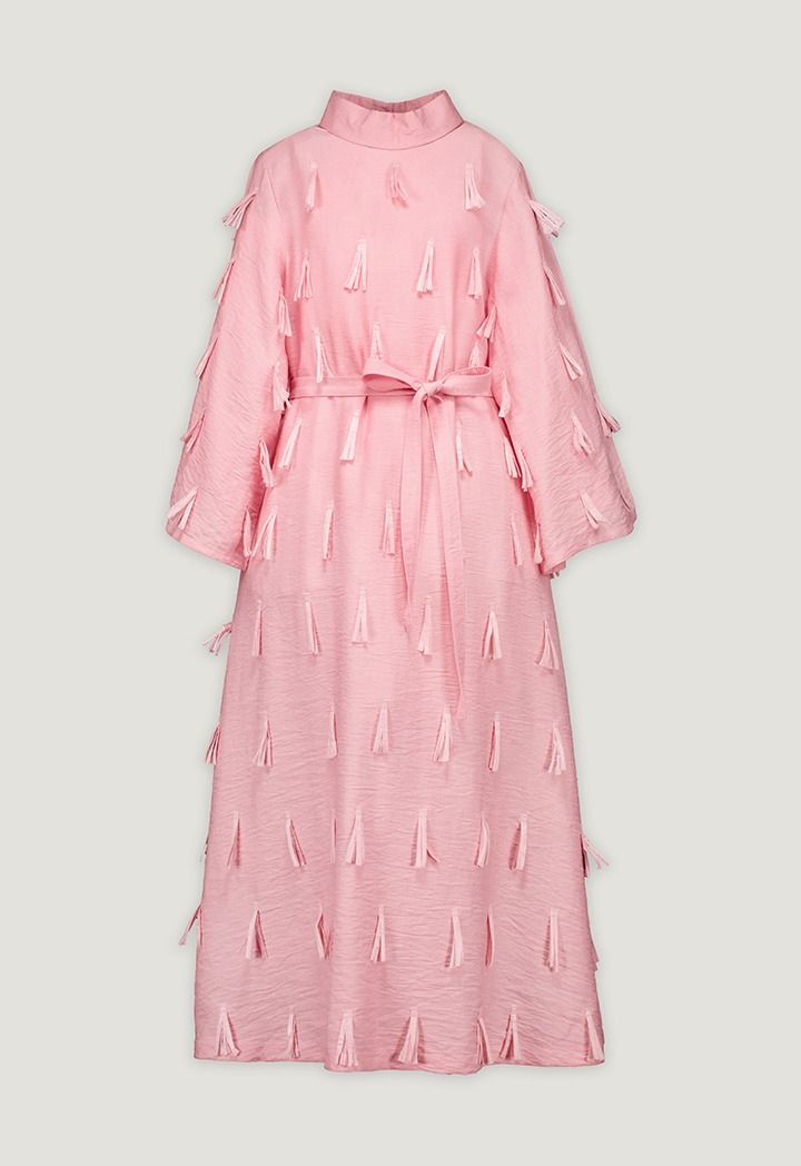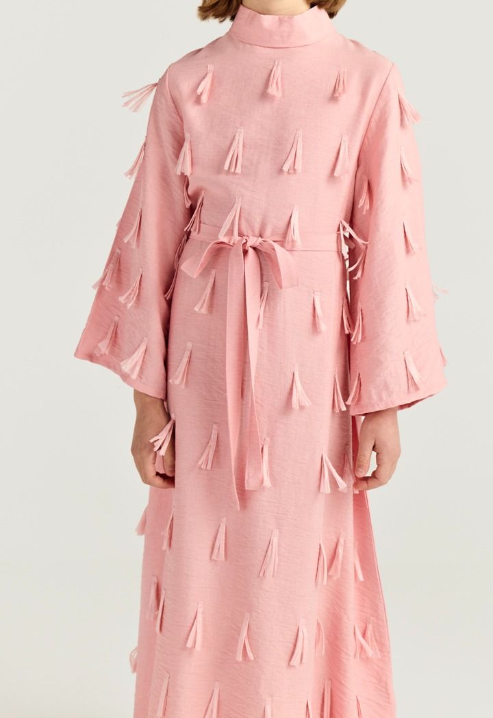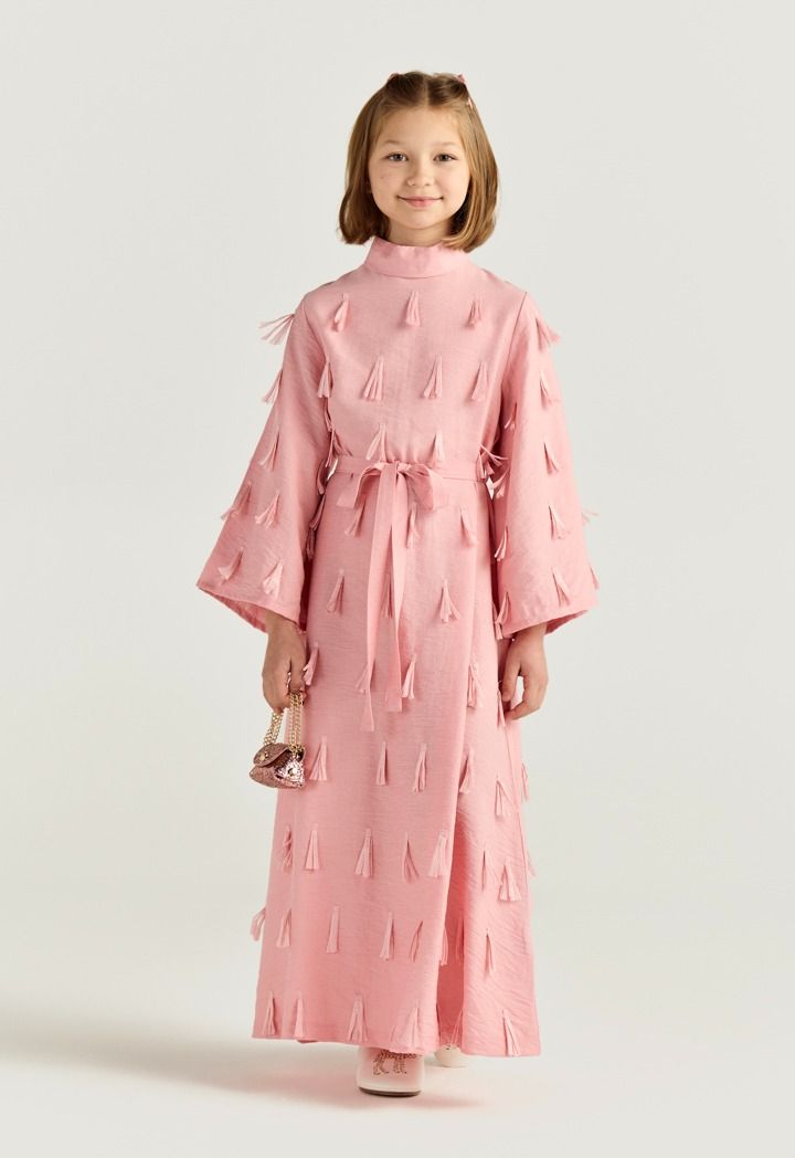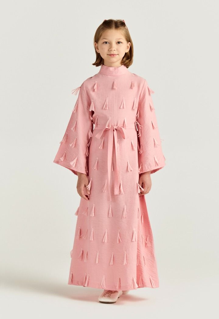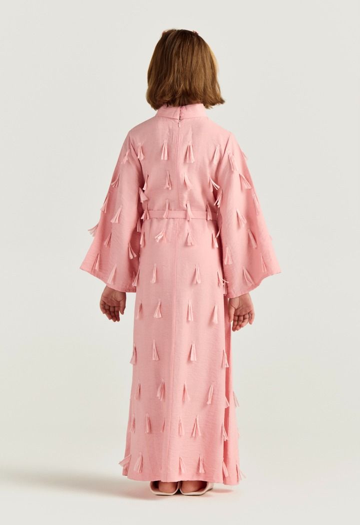 Twirly tassel magic all over in a breezy kaftan-sparkling joy for little girls playful adventures and sunny dress-up days.