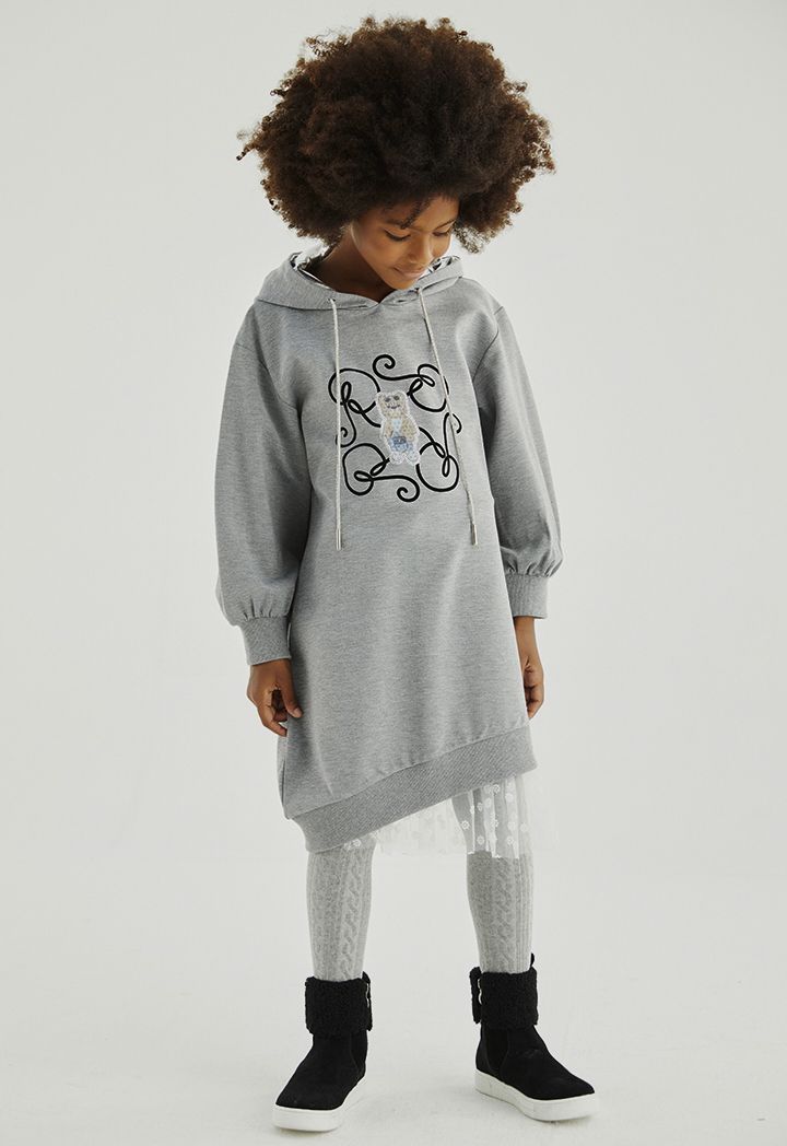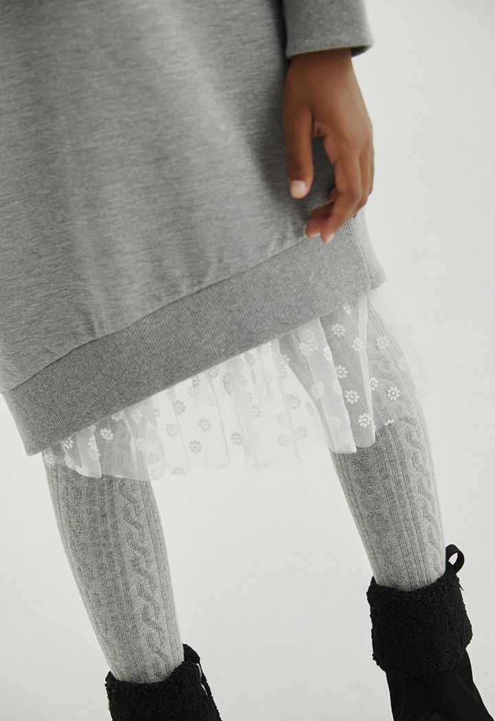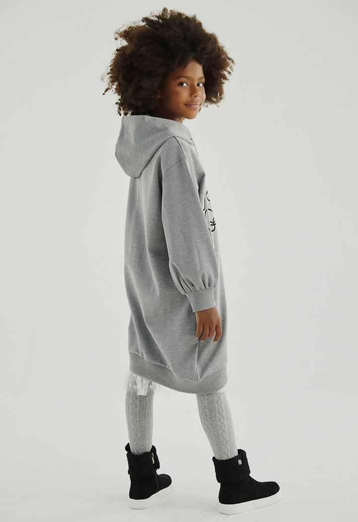 A knitted hoodie dress that features a casual comfortable design and lace hems .