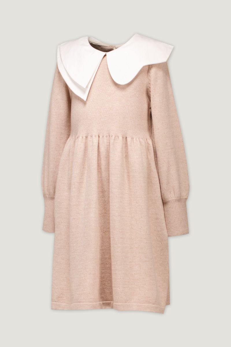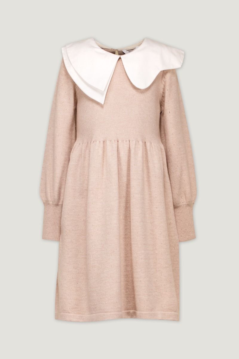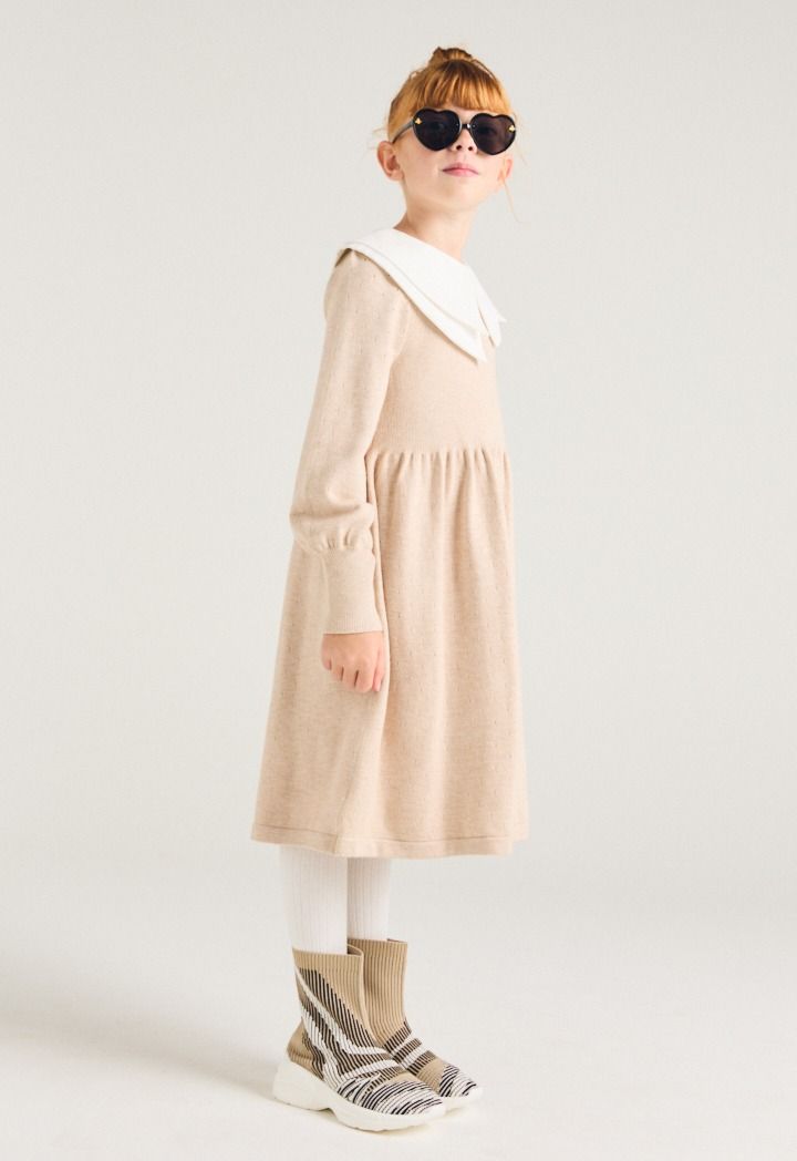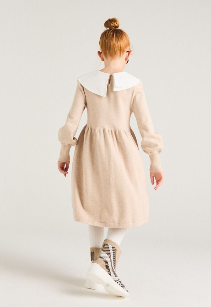 A contrast dress that features a knitted design and an asymmetrical collar.
