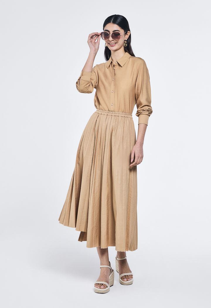 Design: Solid, Asymmetrical Hem, Pleated, Solid, Wrap