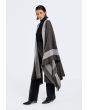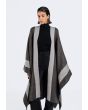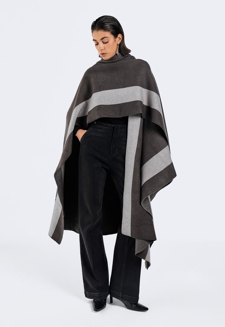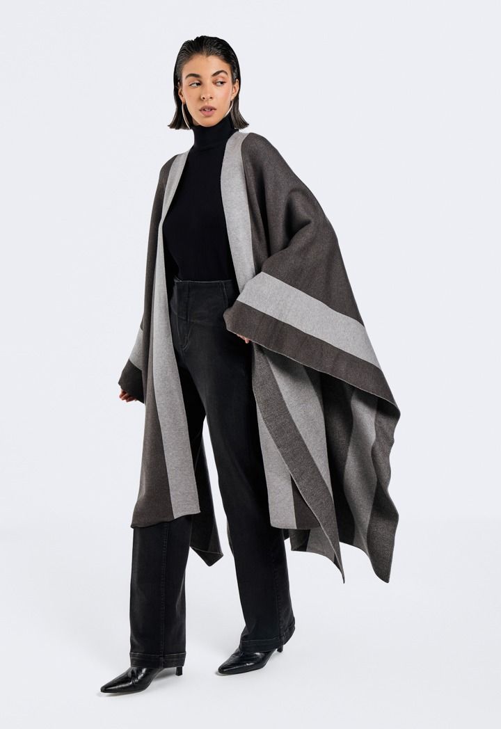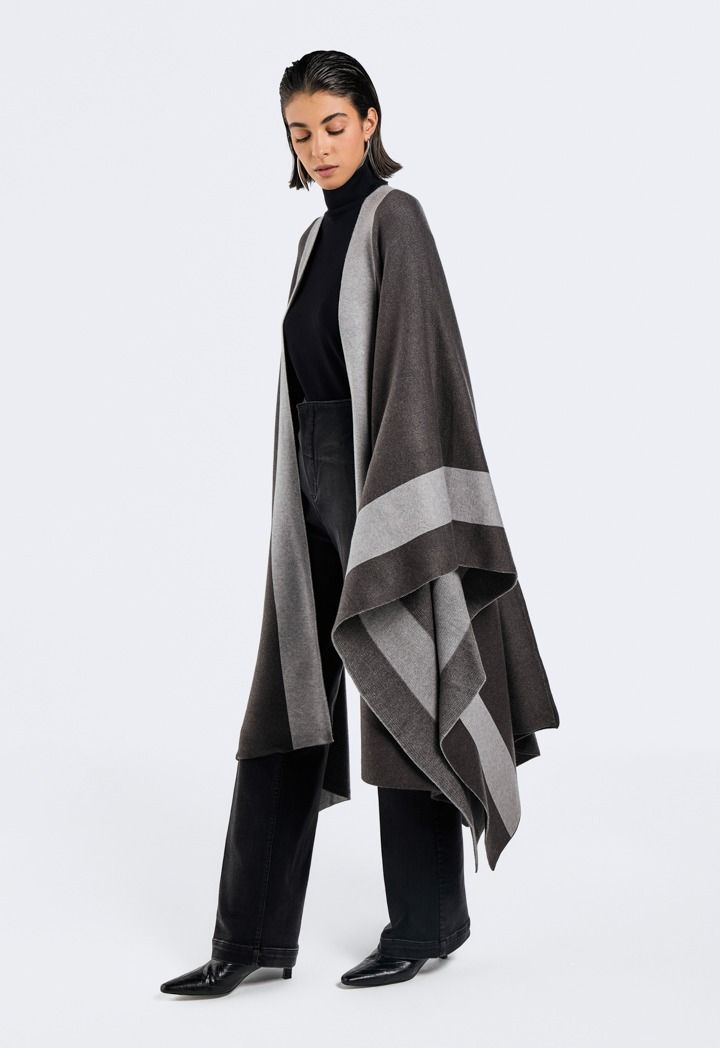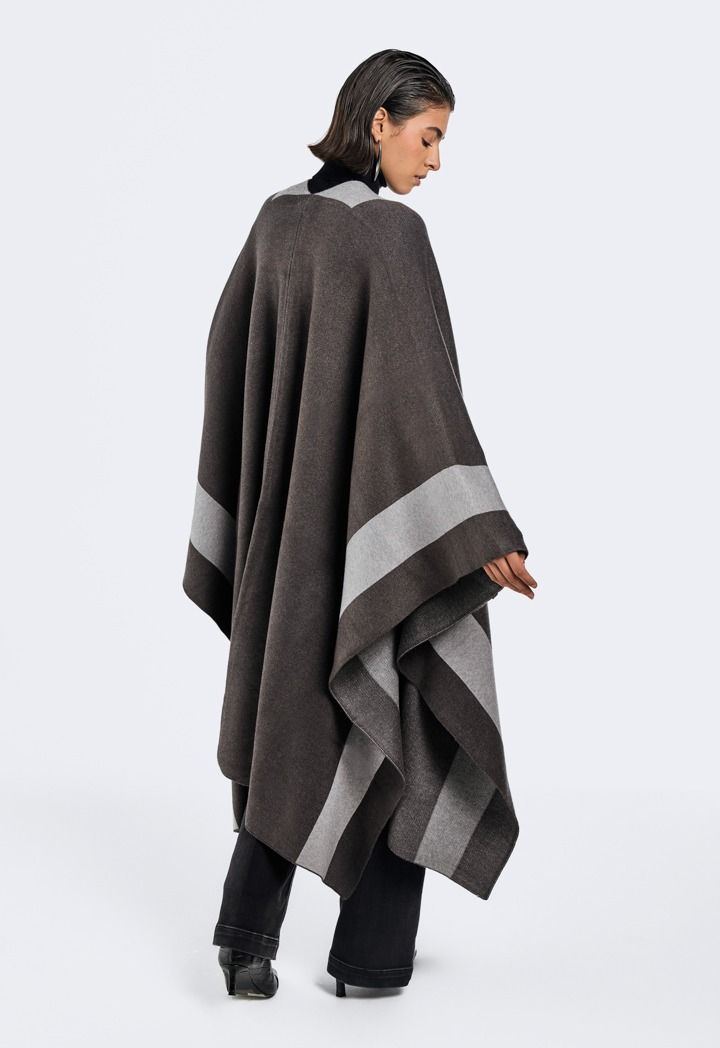 A knitted poncho that features an asymmetrical contrast design to add to its appeal.