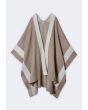 A knitted poncho that features an asymmetrical contrast design to add to its appeal.