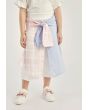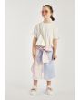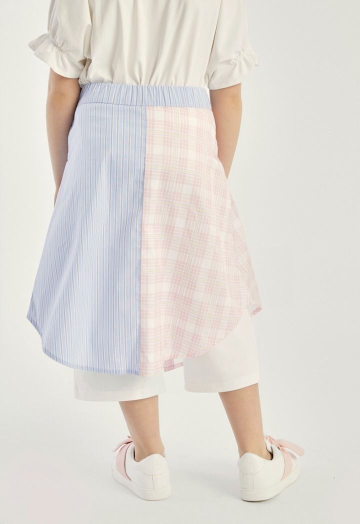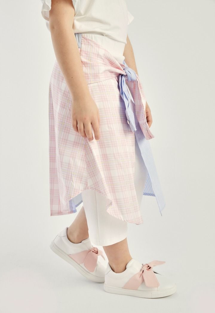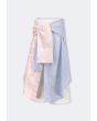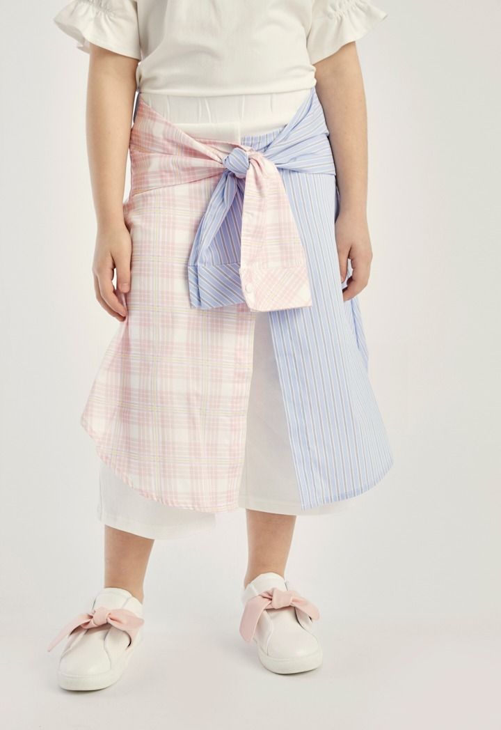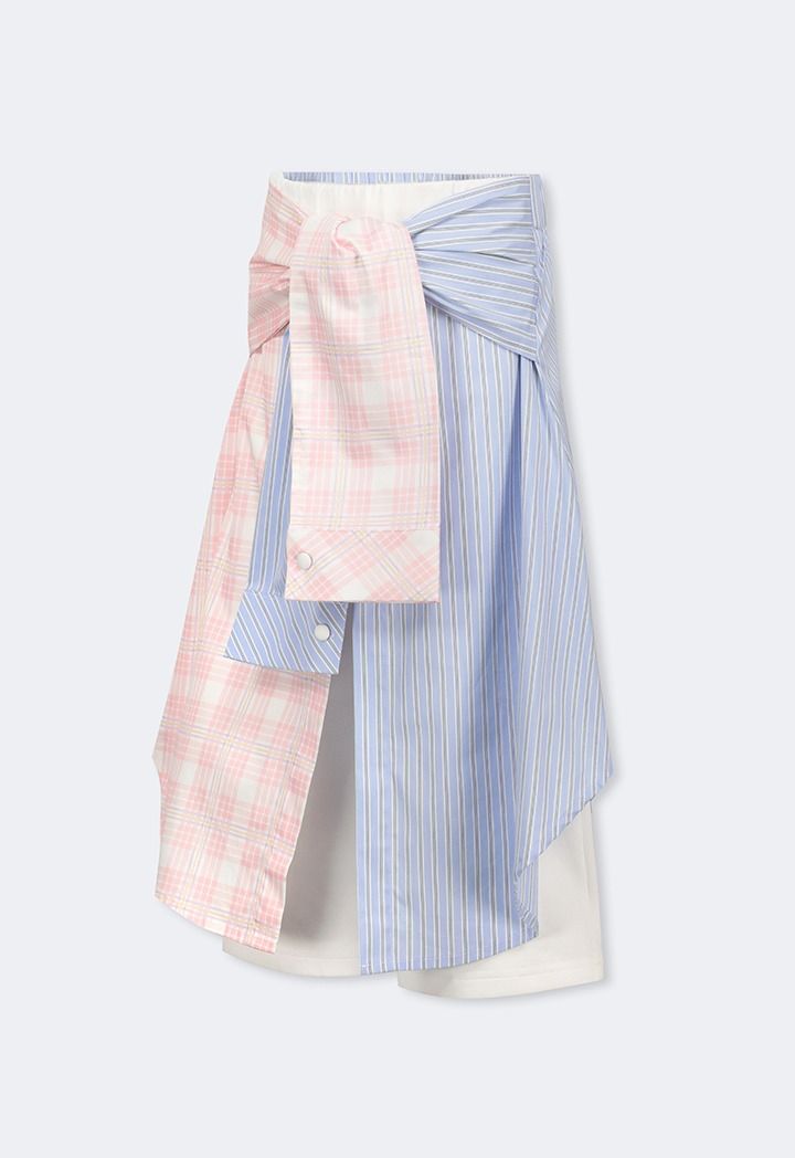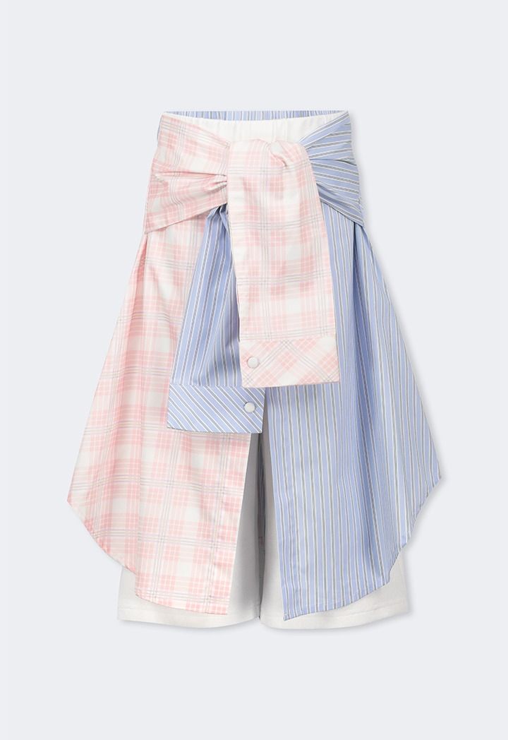 A unique pair of trousers that supports an attached striped shirt tie waist.