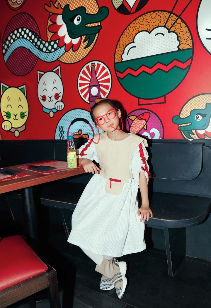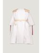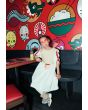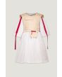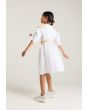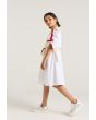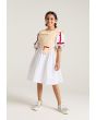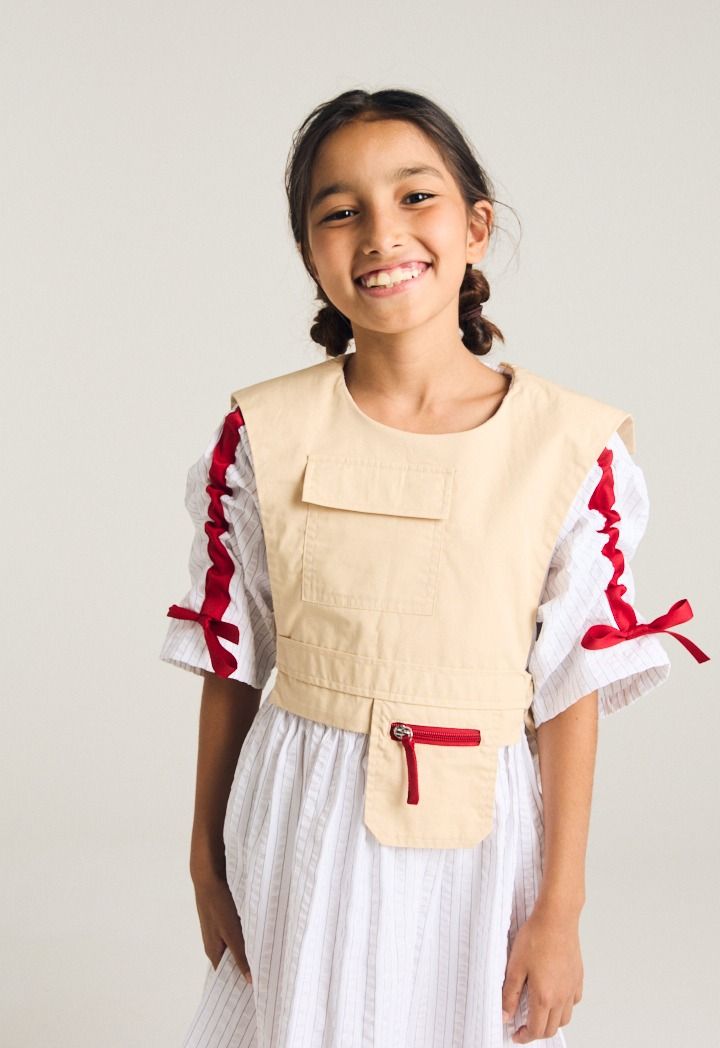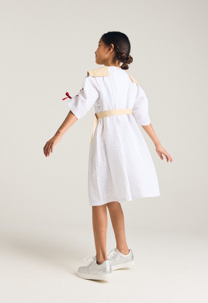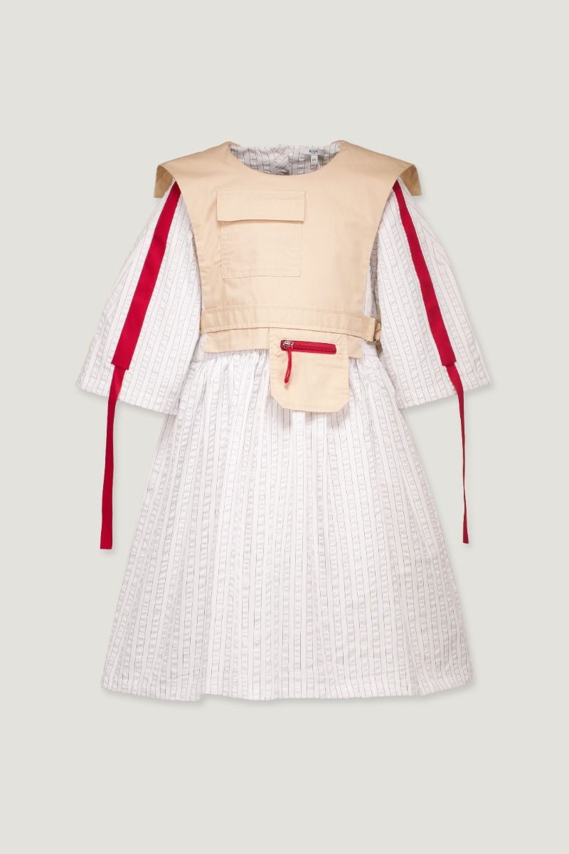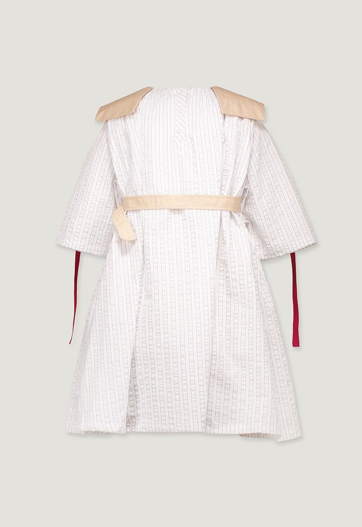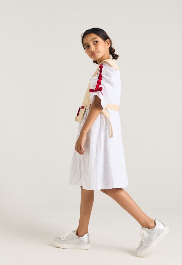 Striped dress with a contrast bodice and sleeve drawstrings, making it a perfect fit for all-year seasons.