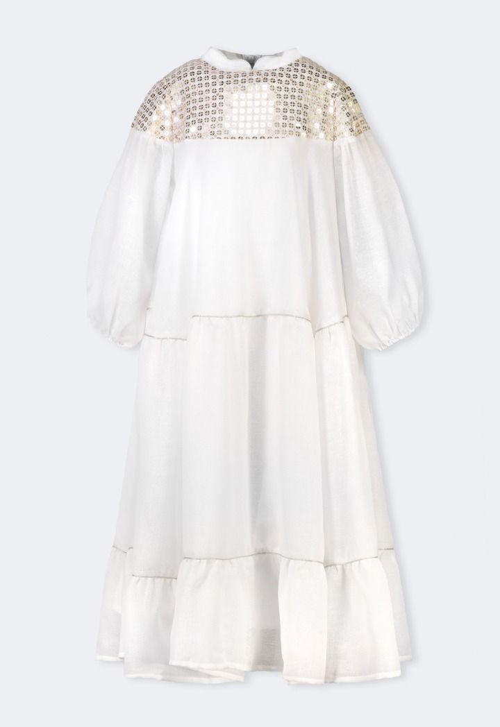 Design: Tiered, Flared, Embroidered, Back Embroidered Overlay, Sequins