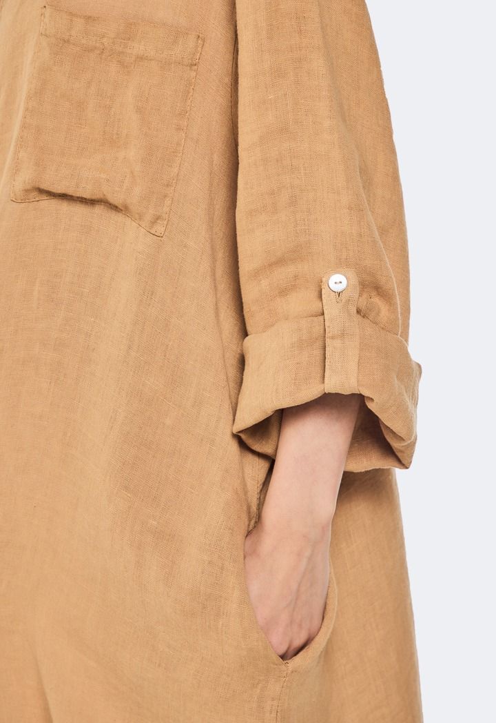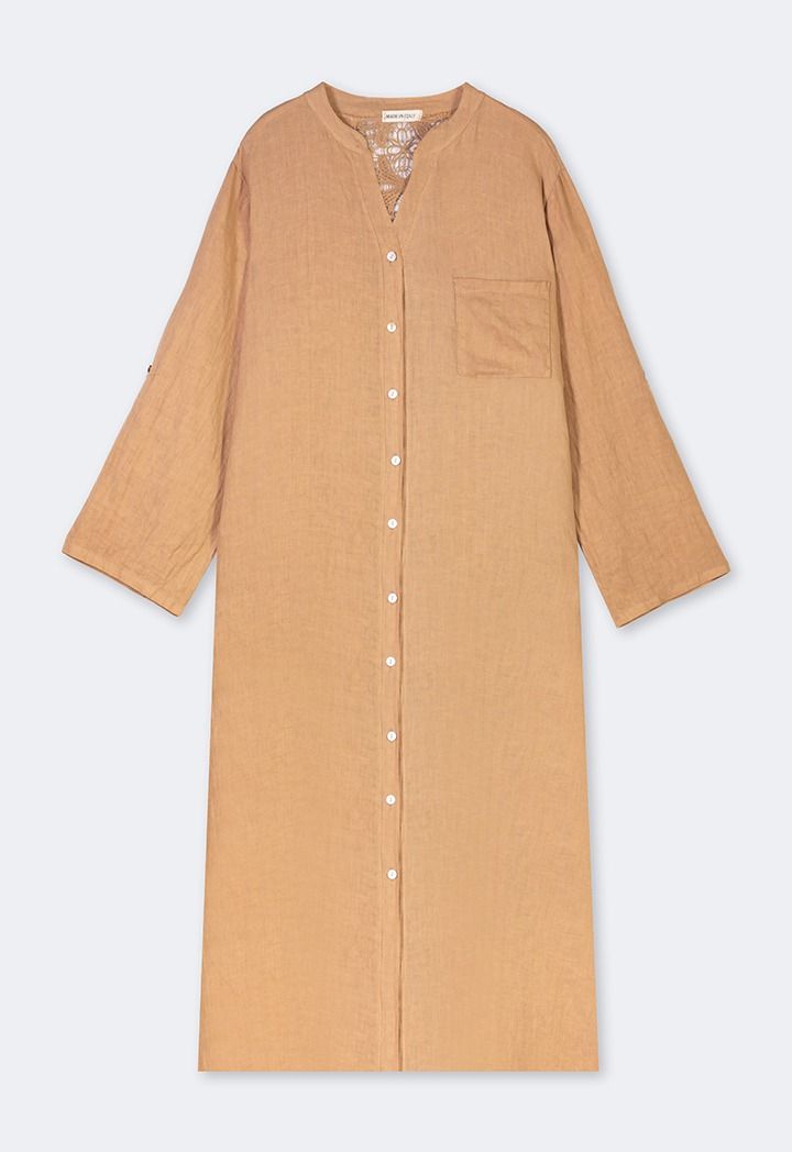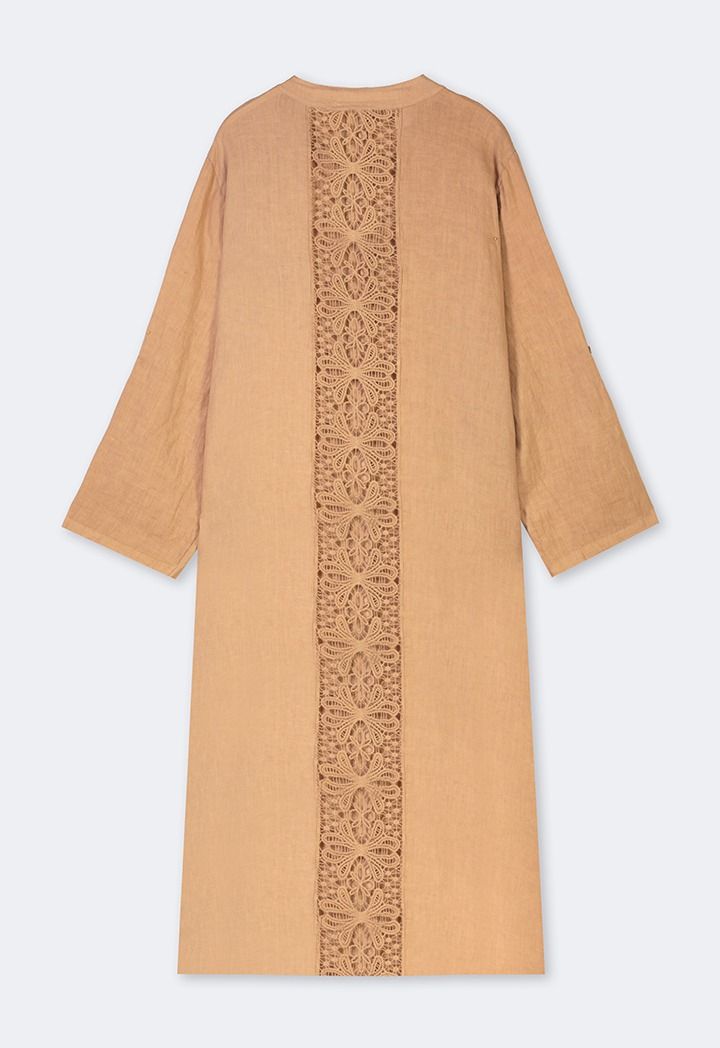 Back Lace Details Linen Shirt Dress |