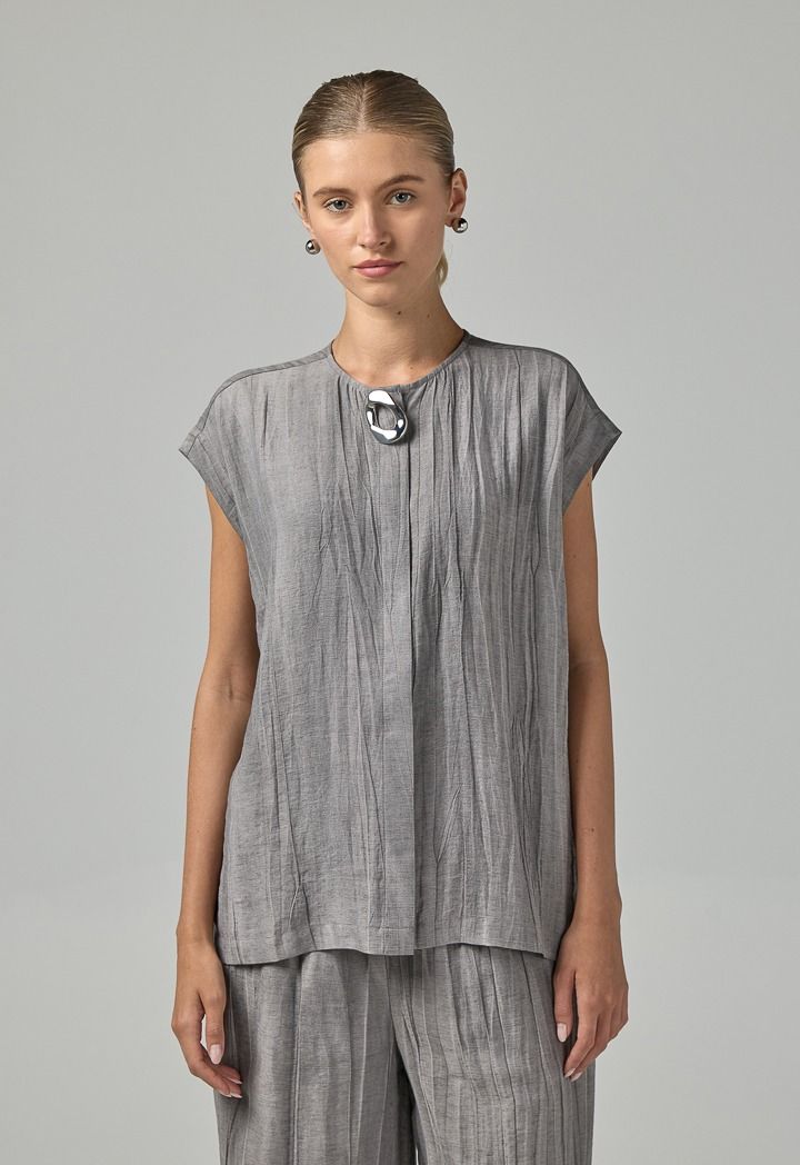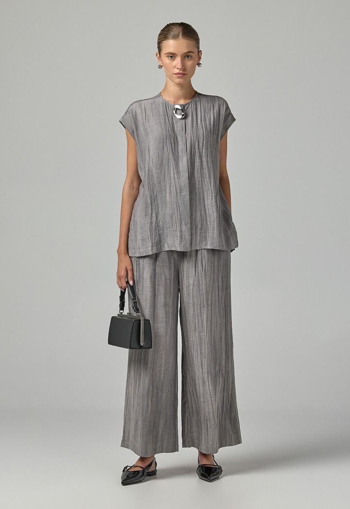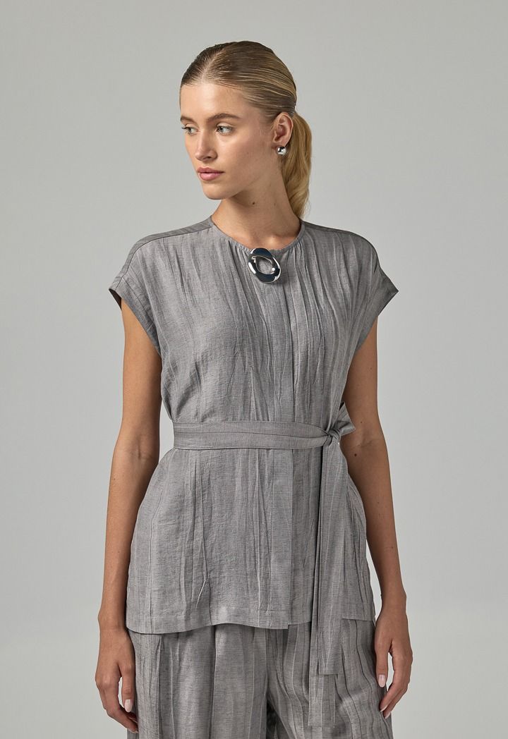 Design: Basic, Crinkled, Belt, Side Slit At Hem, Brooch