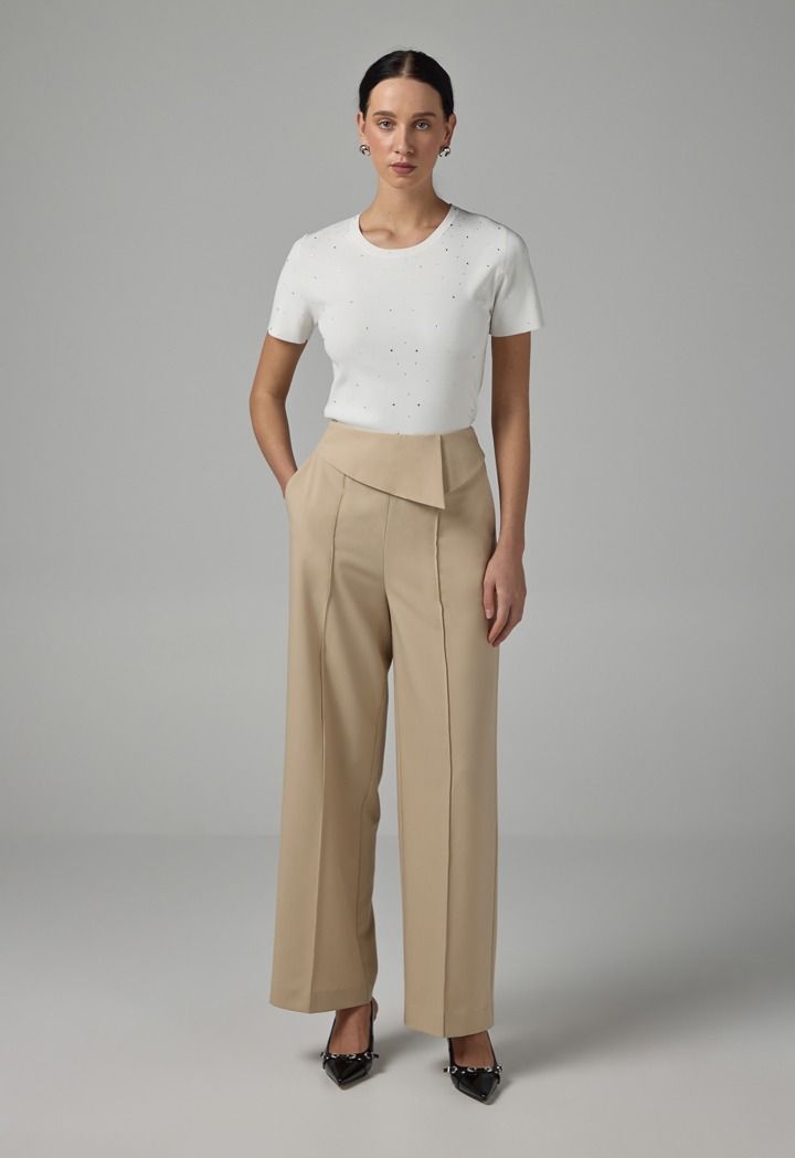 Design: Basic, Wide Leg, Buttons Details, Pin Tuck At Front, Pockets