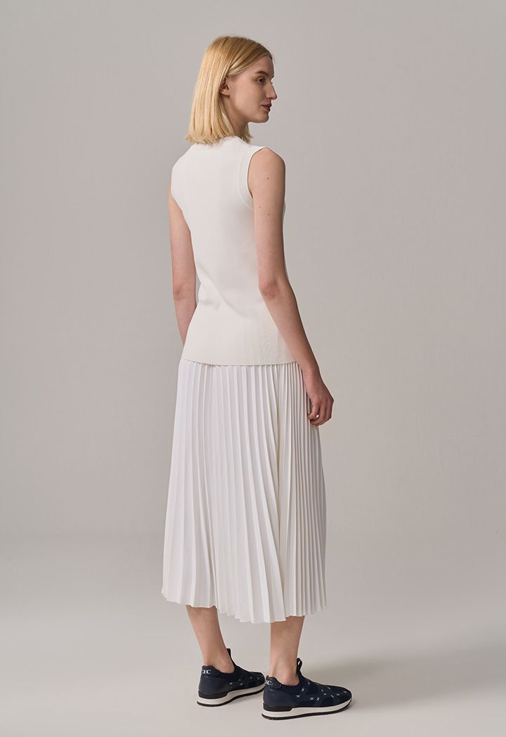 Add this round-neck sleeveless Basic Top to your wardrobe.