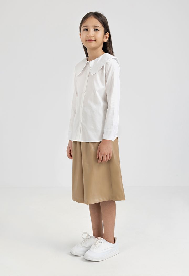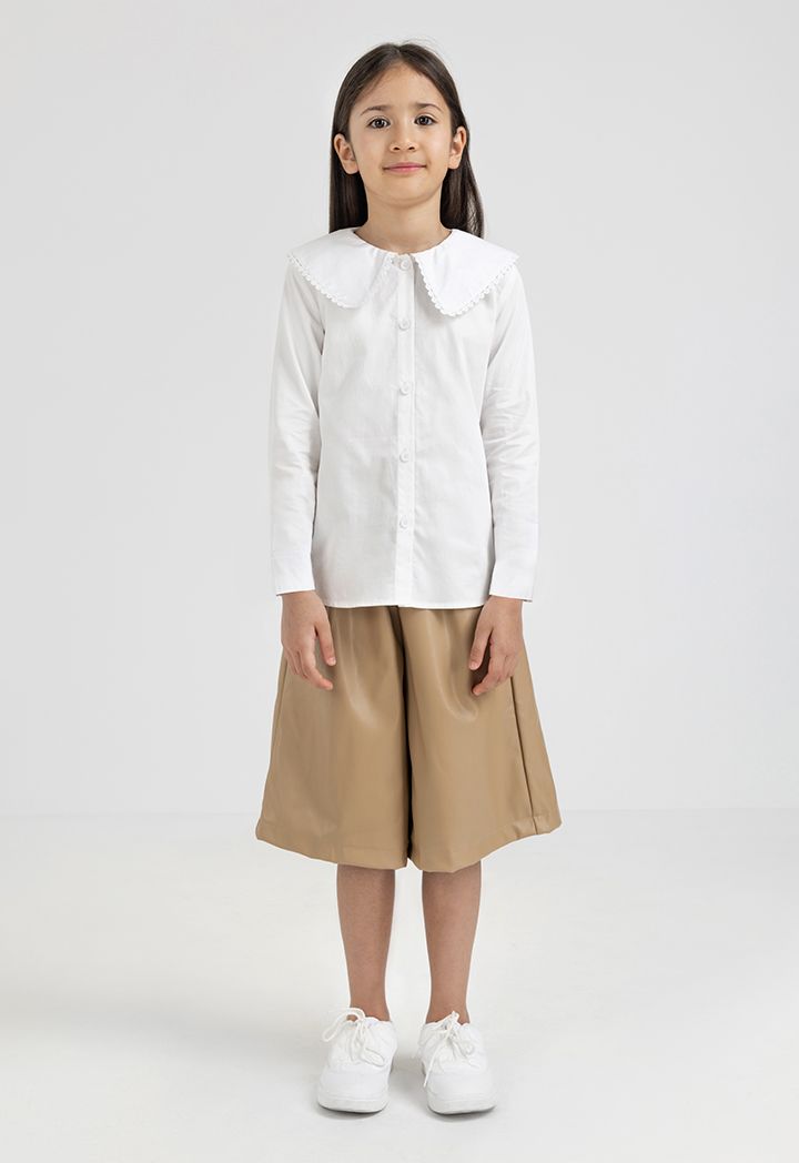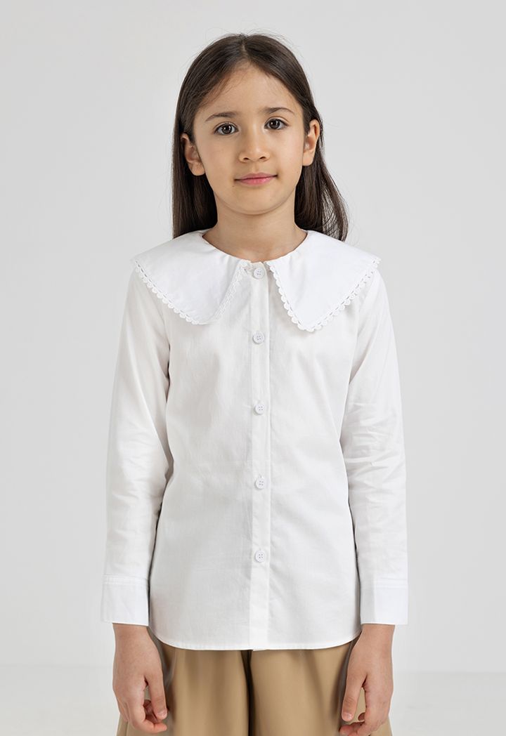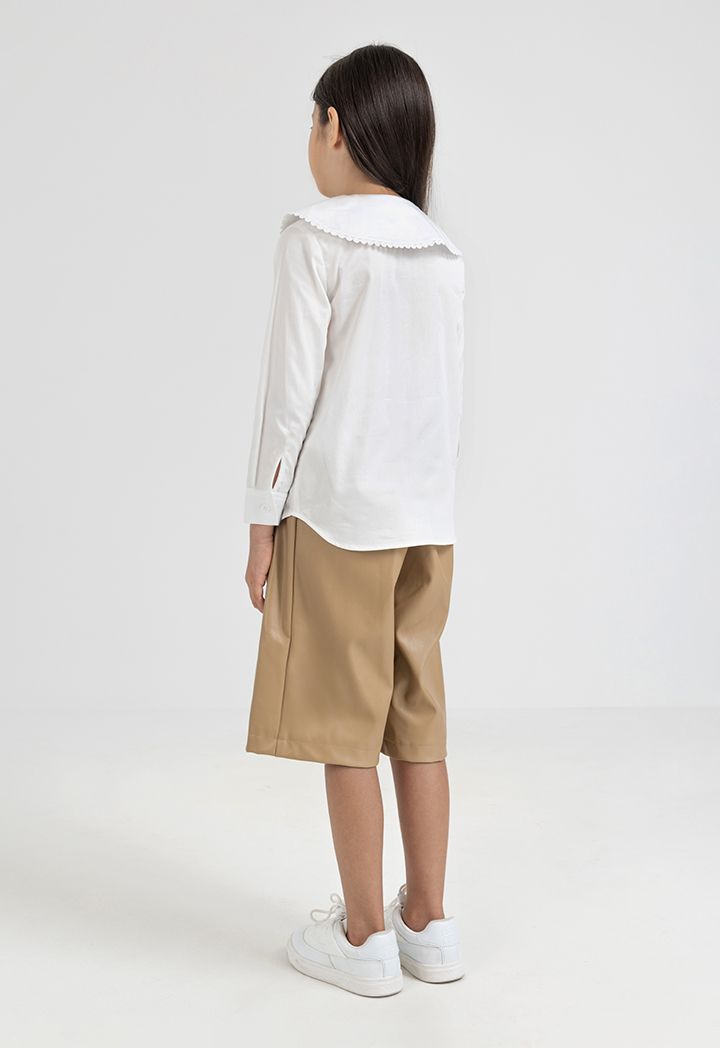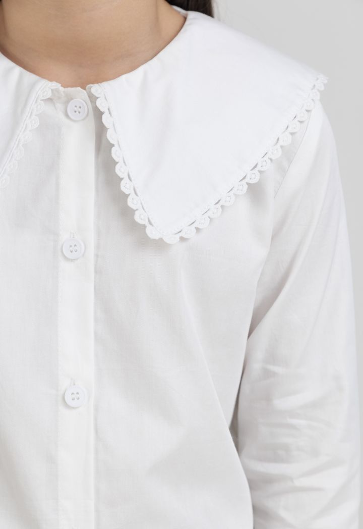 A basic solid shirt that is amplified by its sailor collar that only adds to its appeal.