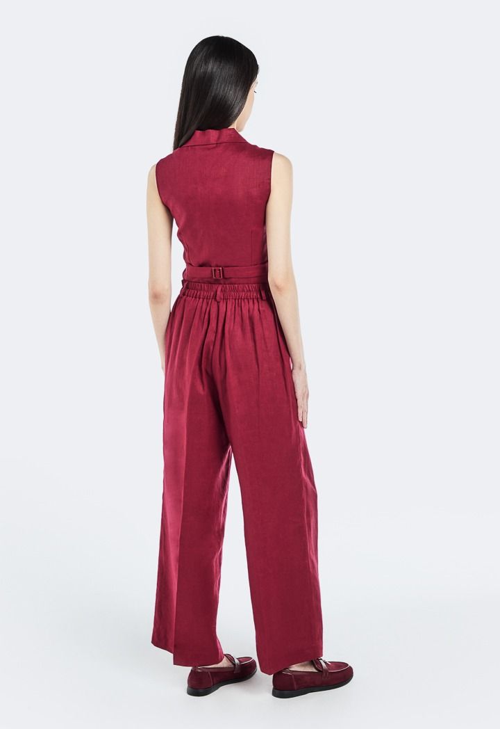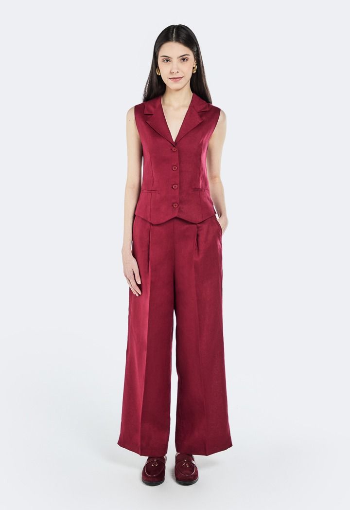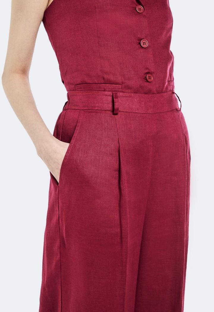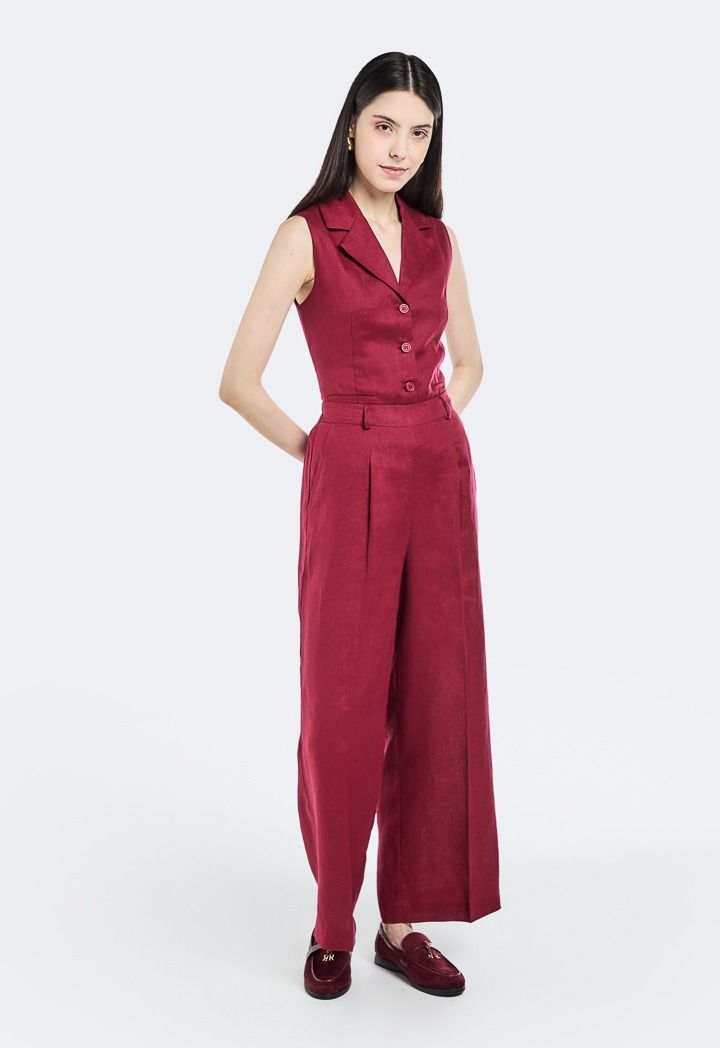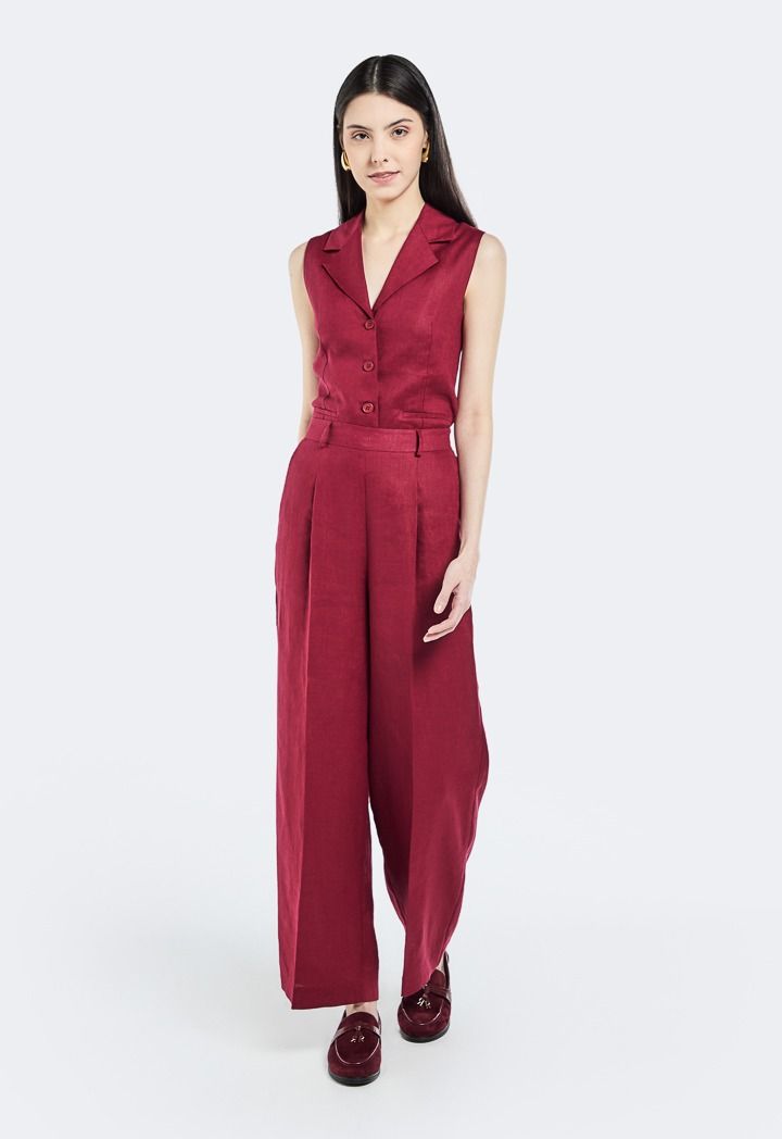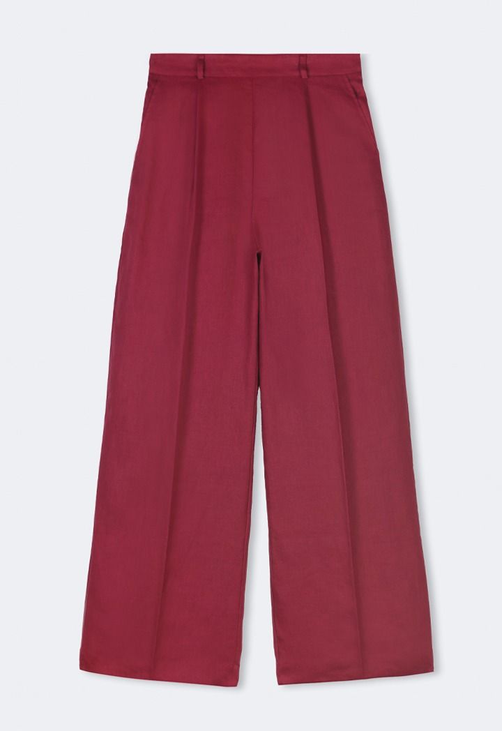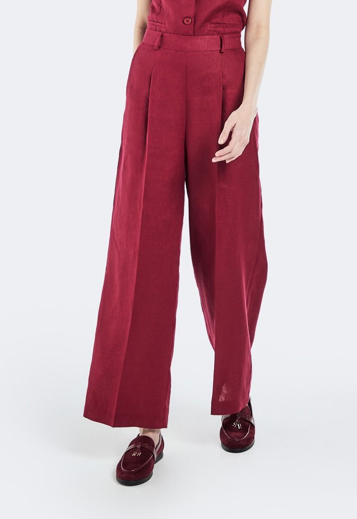 Design: Solid, Straight Cut, High Waist, Side Pockets, Pleated Waist, Wide Leg