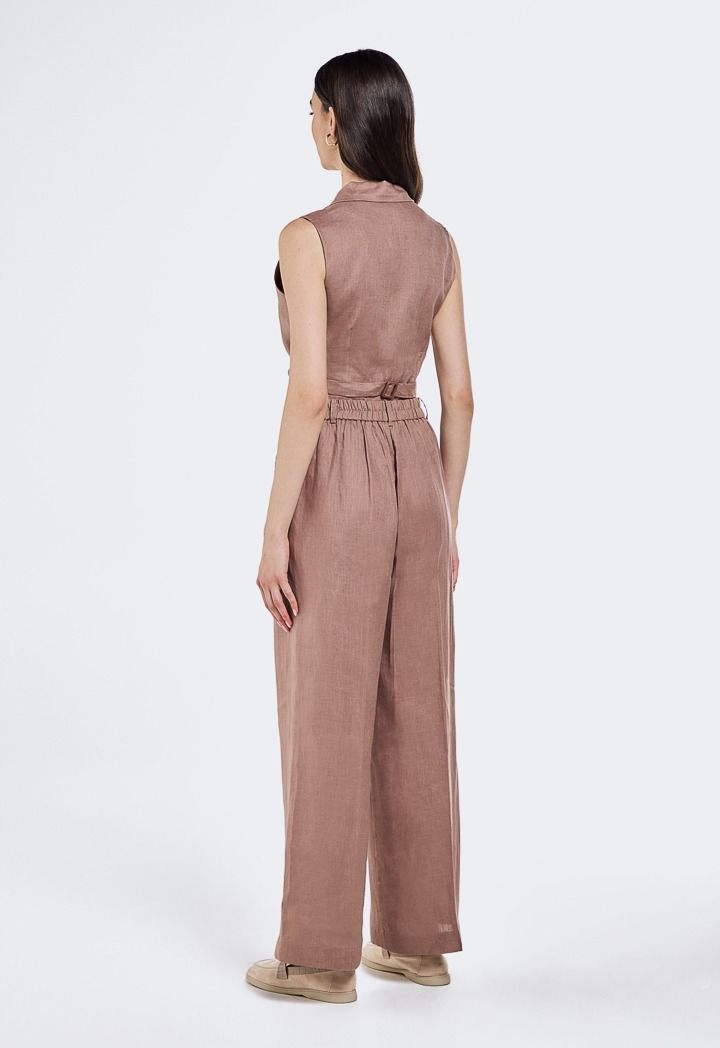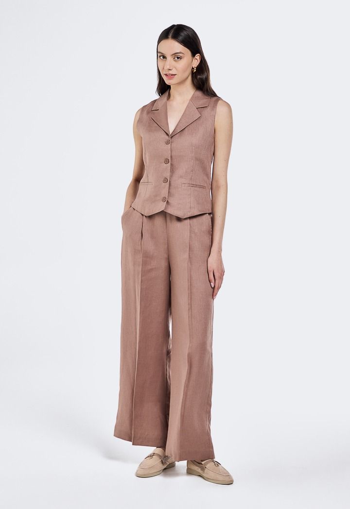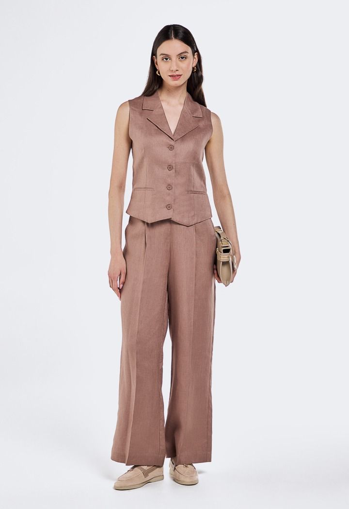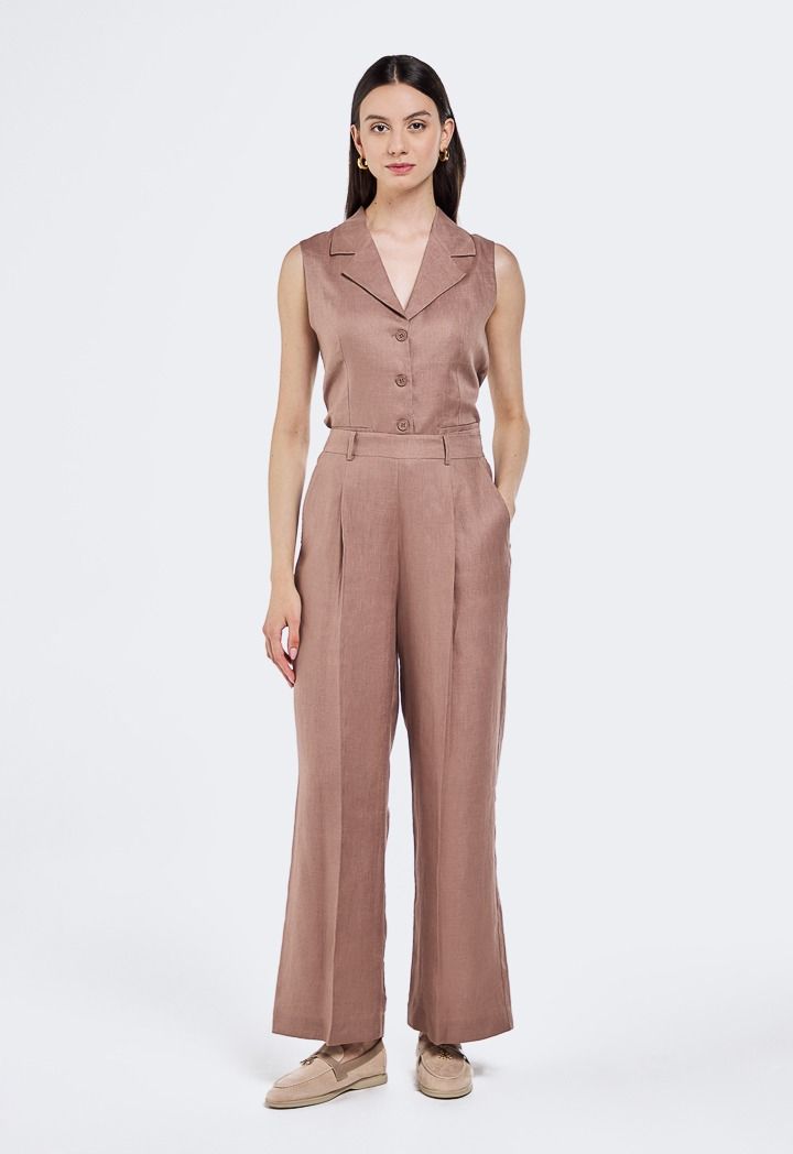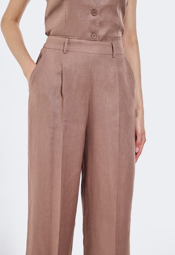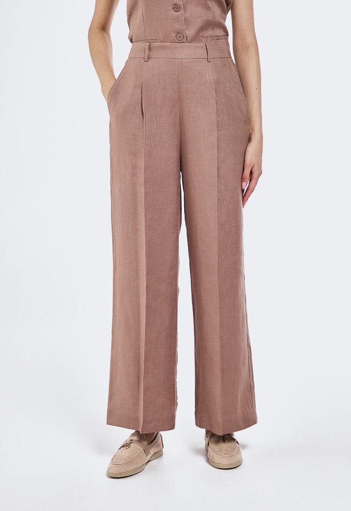 Design: Solid, Straight Cut, High Waist, Side Pockets, Pleated Waist, Wide Leg