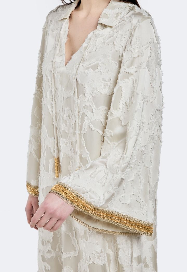 Design: Solid, Bead Embellished, Textured Jacquard, Side Slit