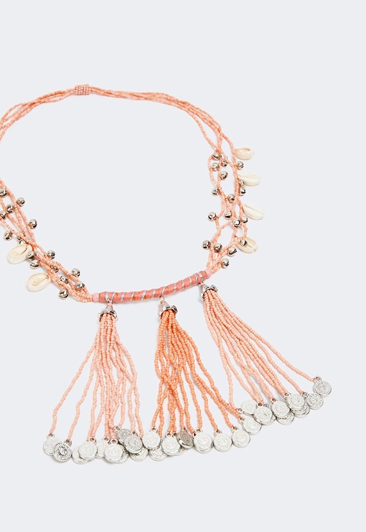 Let your little girl embrace her inner beauty with this mixed necklace featuring a beaded metallic design with some tassels.