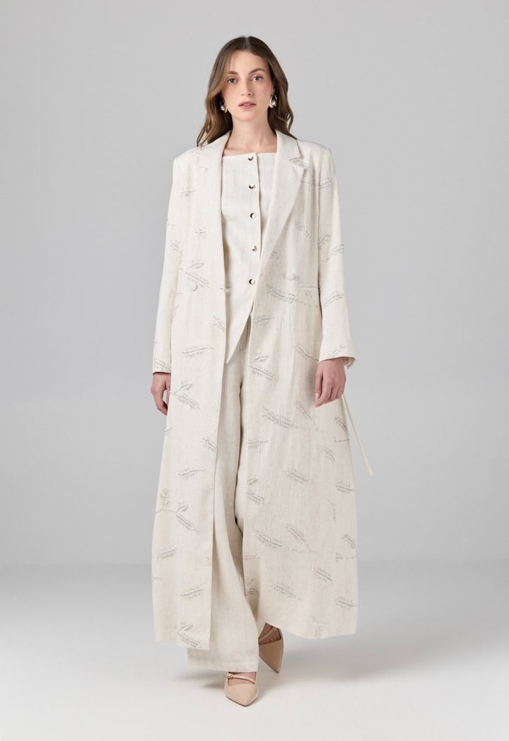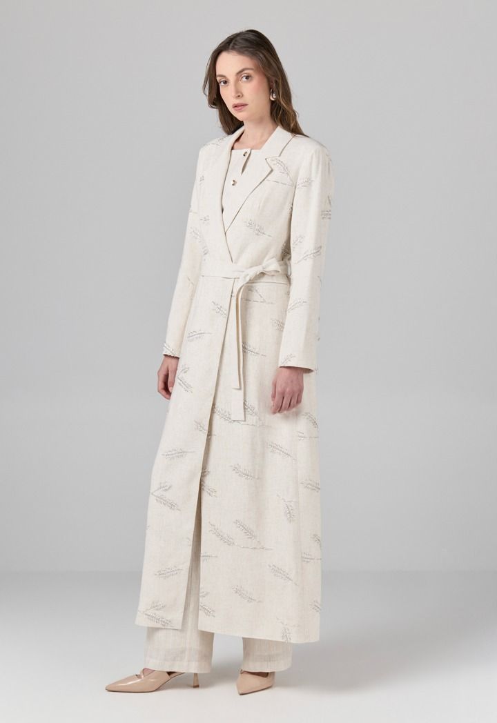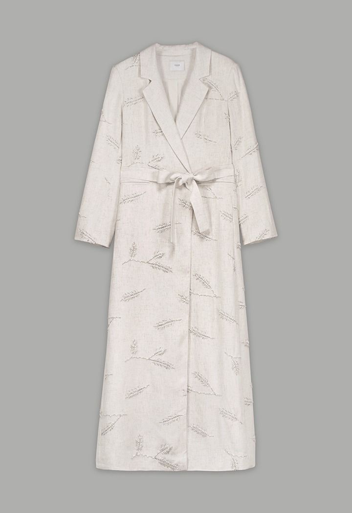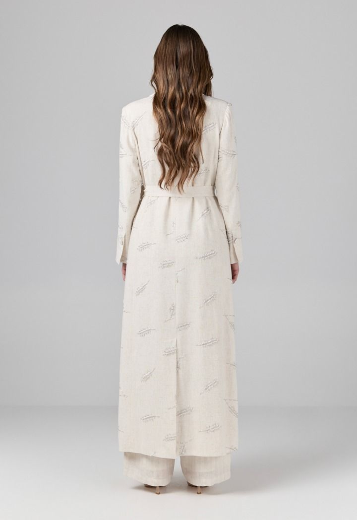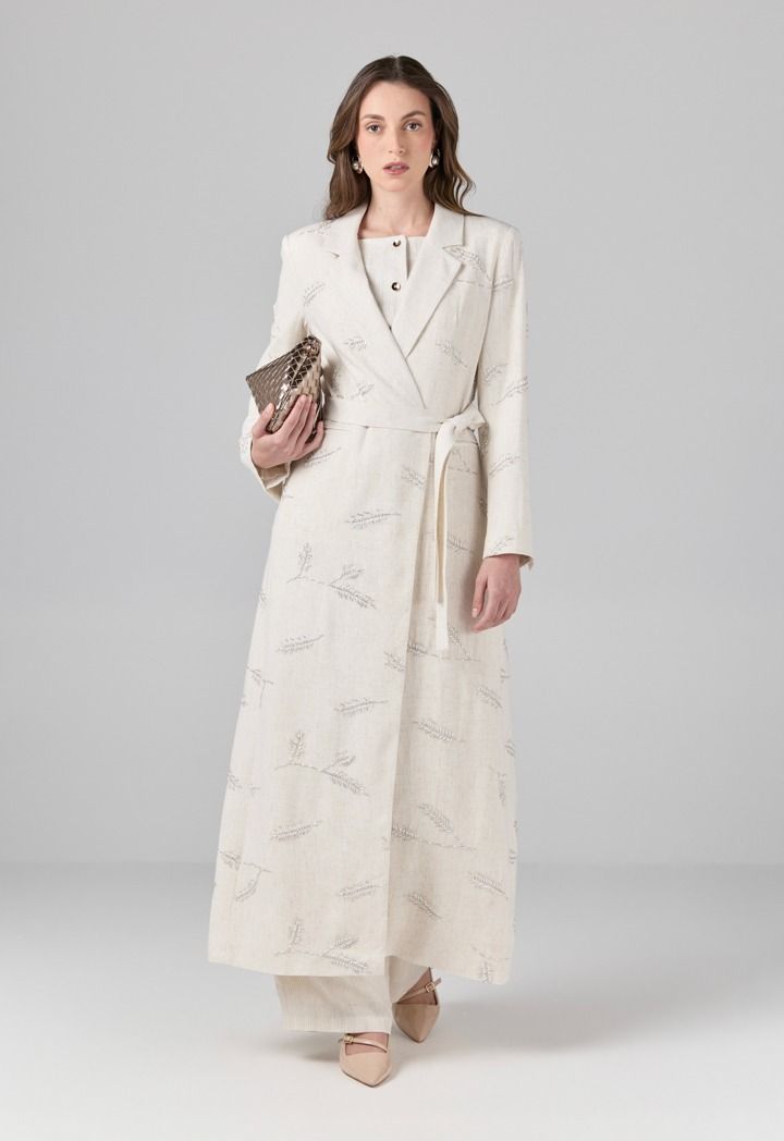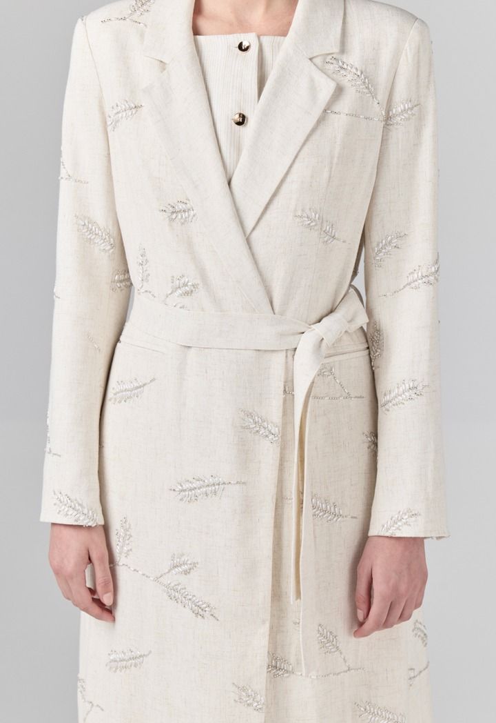 Design: Solid, Embroidered, Attached Lining, Front Pockets, Lurex Detail, Textured, Belt