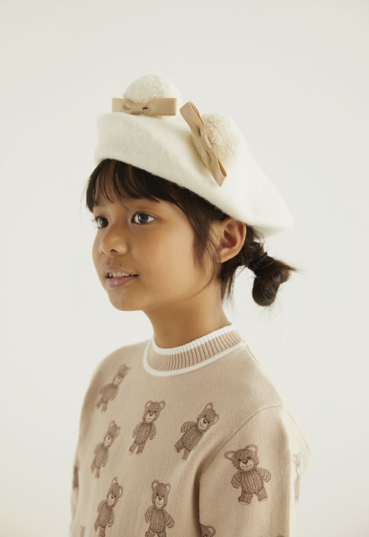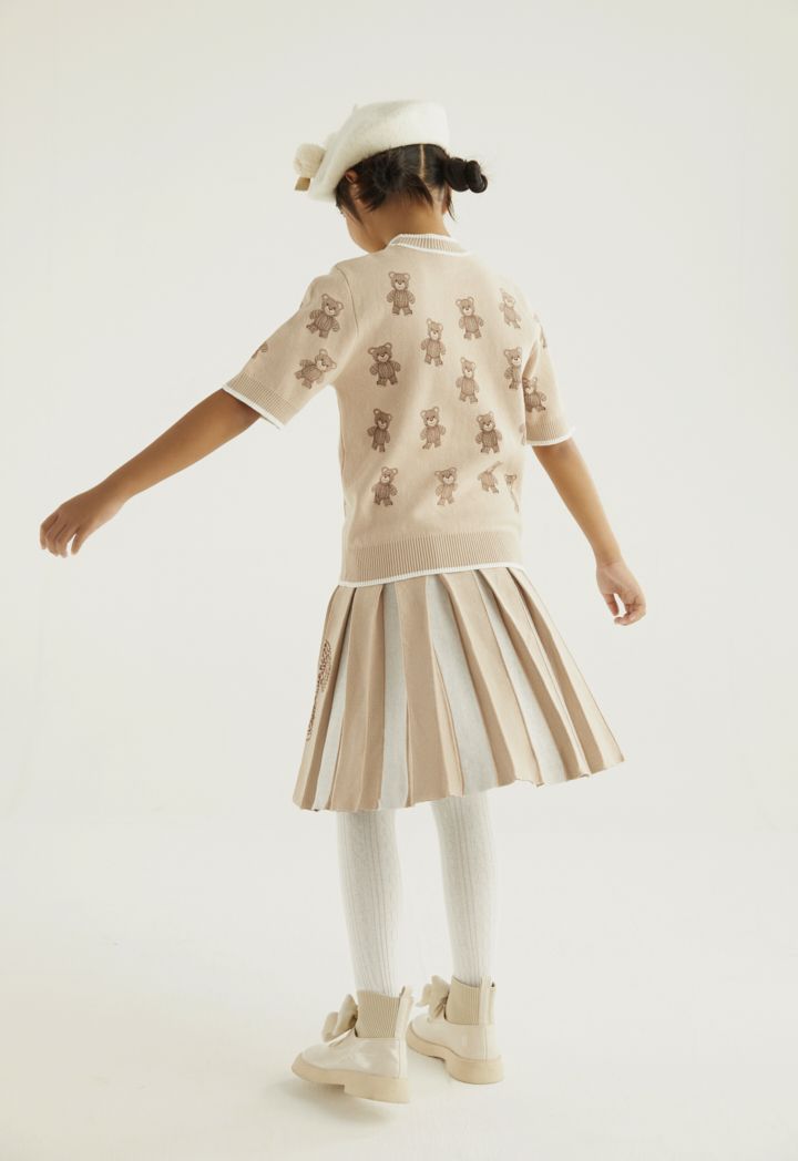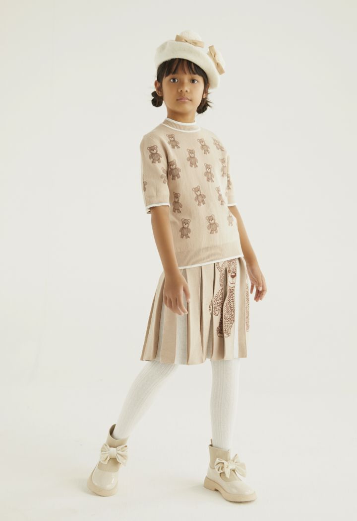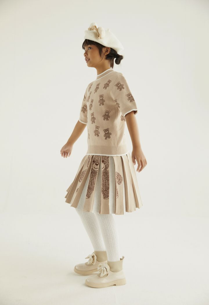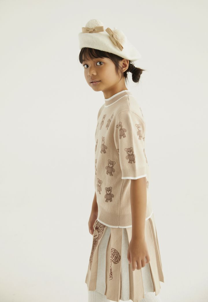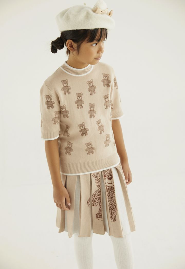 A cute bear patterned knitted t shirt that is best styled with its matching design skirt.