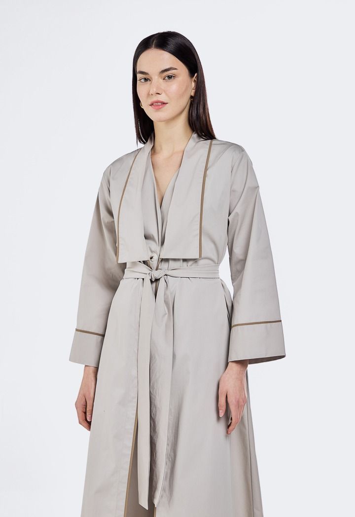 Design: Contrast, Belted, Side Pockets