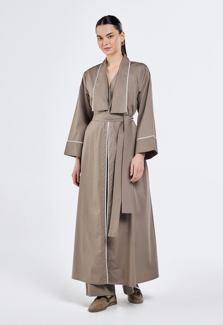 This outfit contains an open abaya, a sleeveless vest and trousers that ensures comfort and freedom of movement its perfect for special occasions or even for everyday outings.