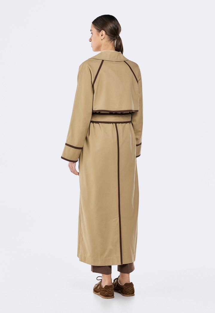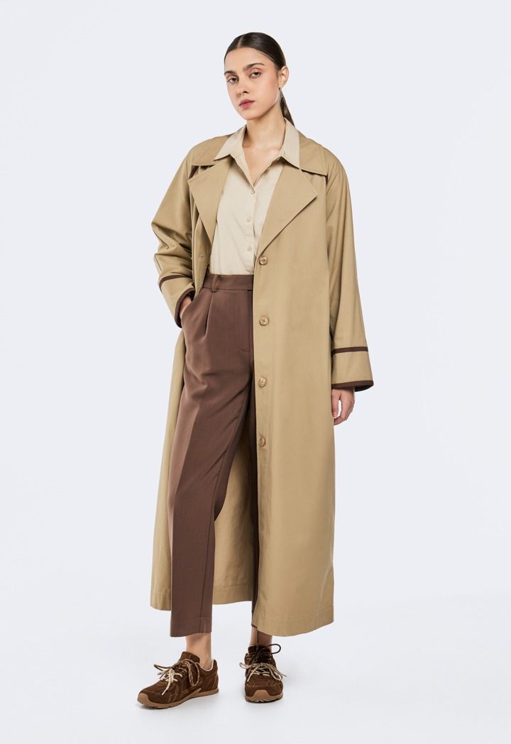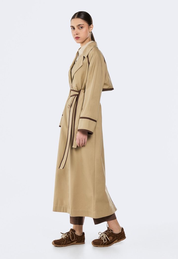 Design: Contrast, Belted, Side Pockets, Back Slit, Storm Flap