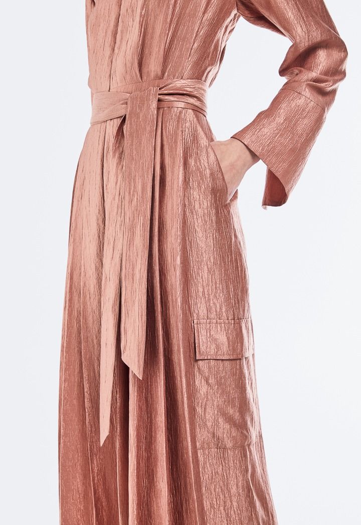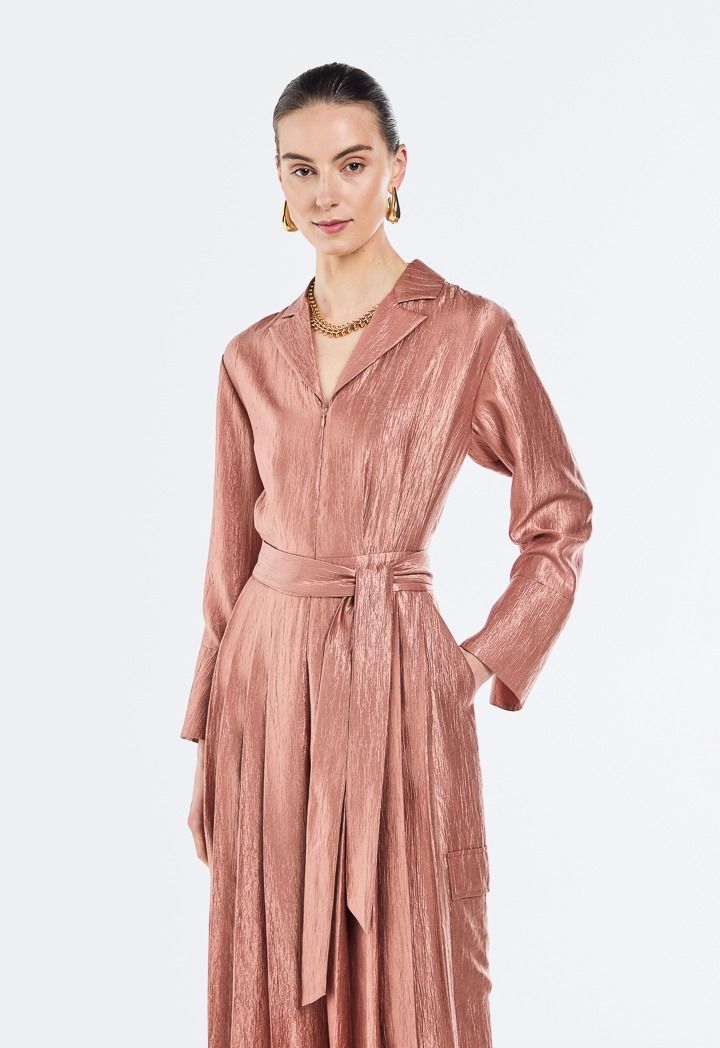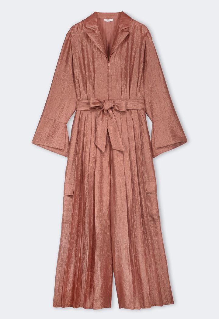 Belted Crinkled Pleated Jumpsuit |