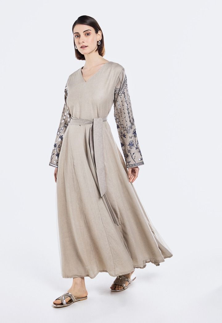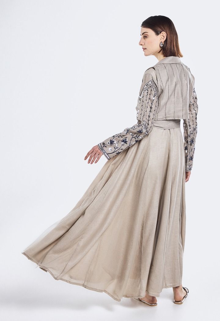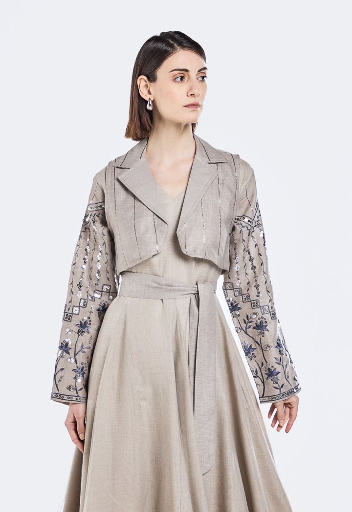 Belted Dress & Sequins Embellished Gilet Set (2PCS)