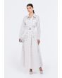 Design: Solid, Floral Embroidery, Belted, Attached Lining, Flap Pockets, Mesh details
