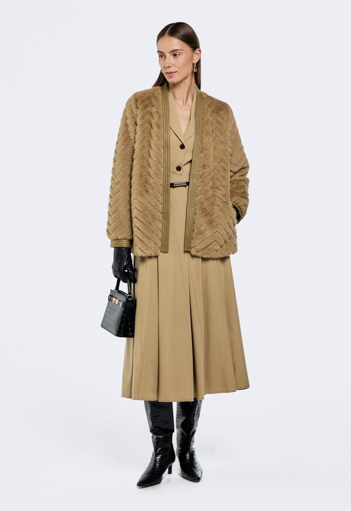 Faux Fur Jacket designed for chic and sophisticated layered look in cooler seasons .