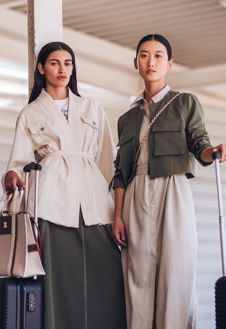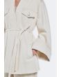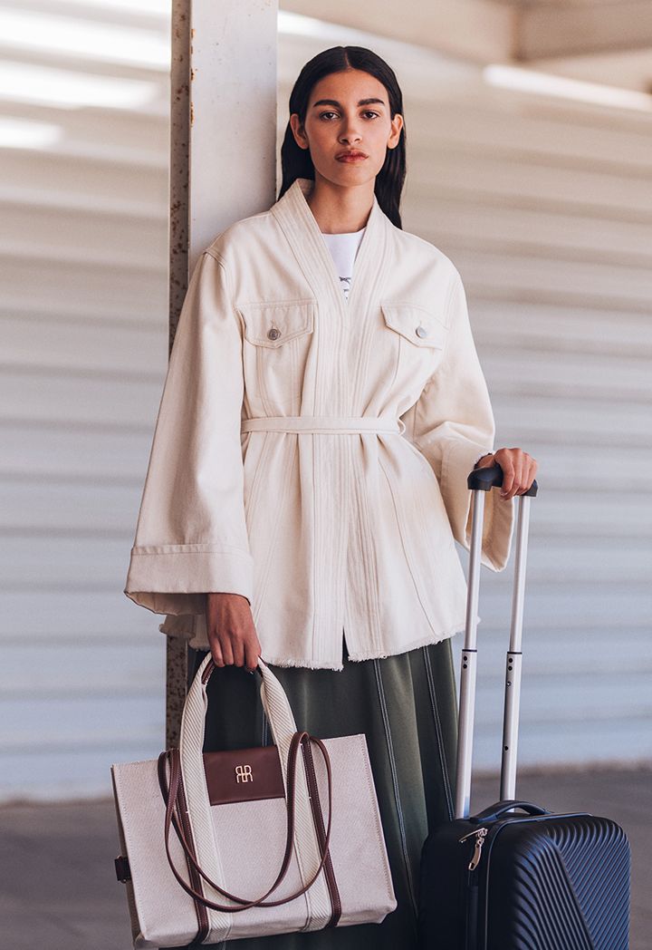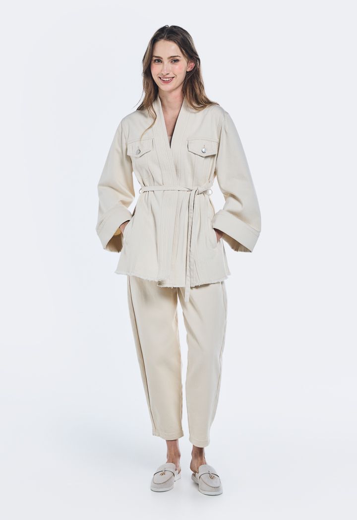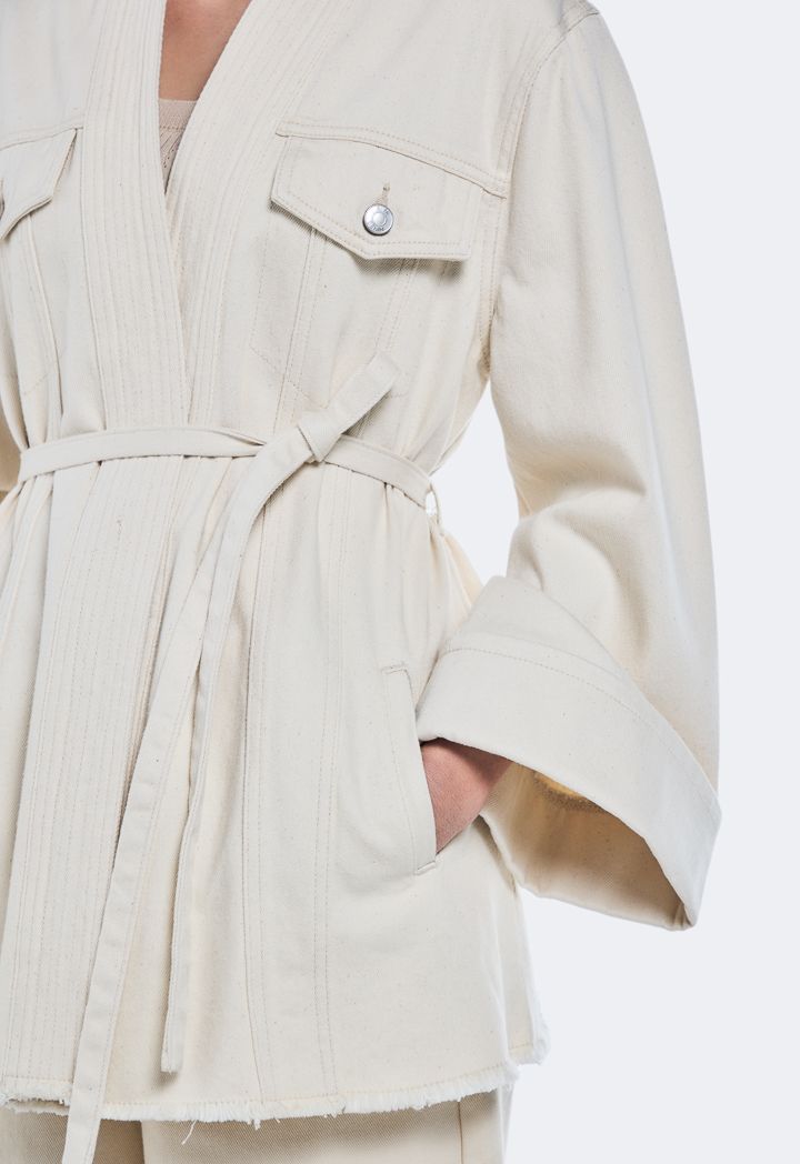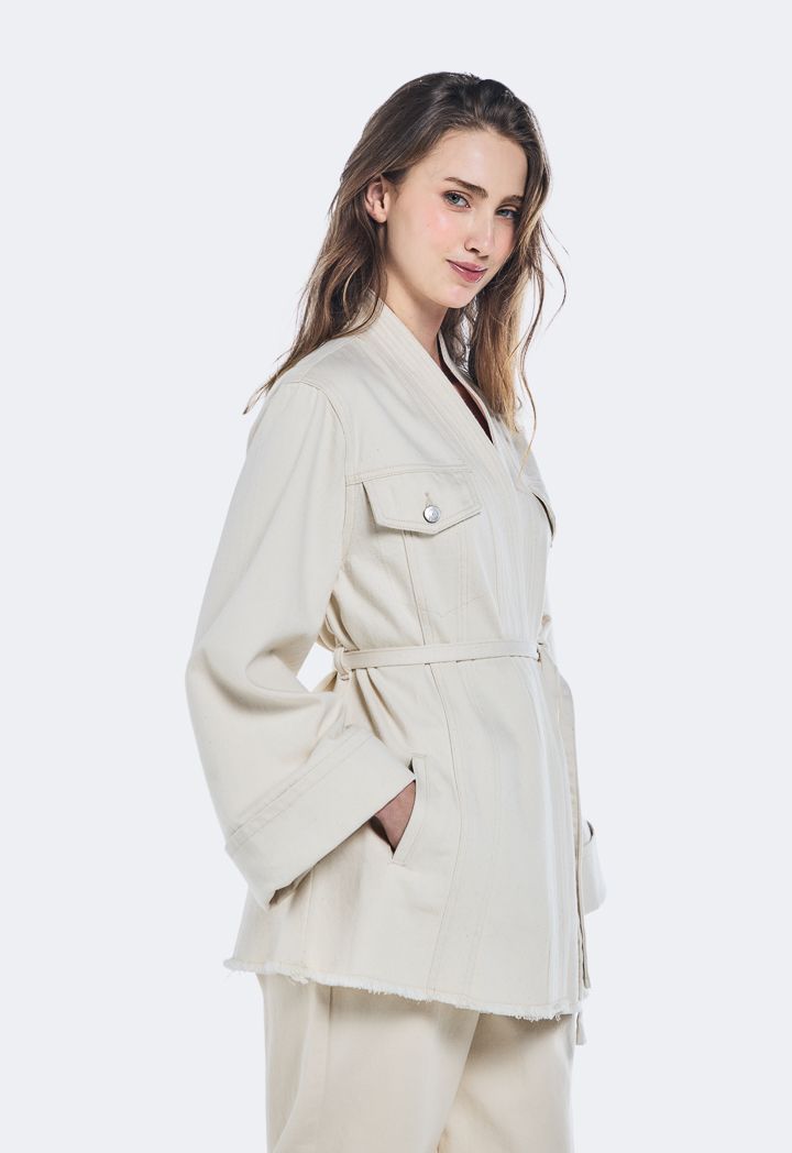 Design: Solid, Flap and Side Pockets, Denim, Frayed Hem, Belted