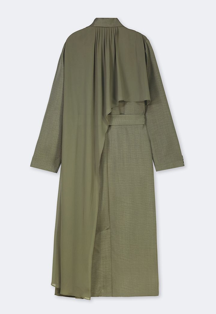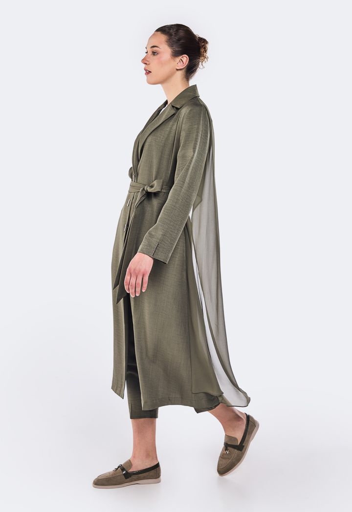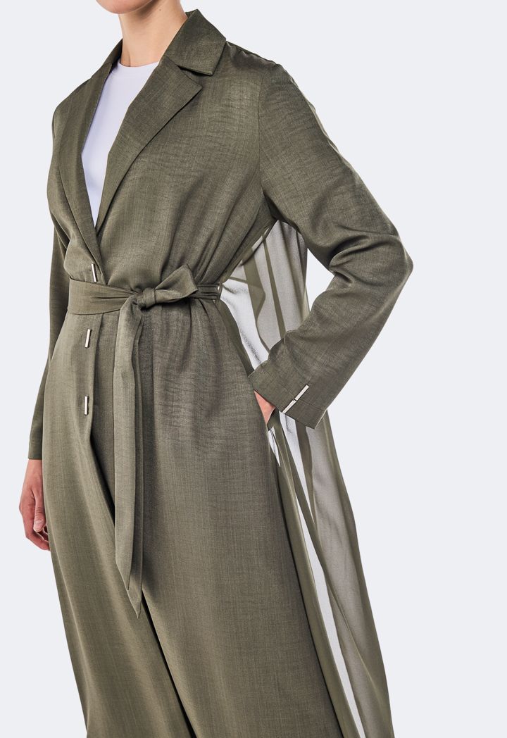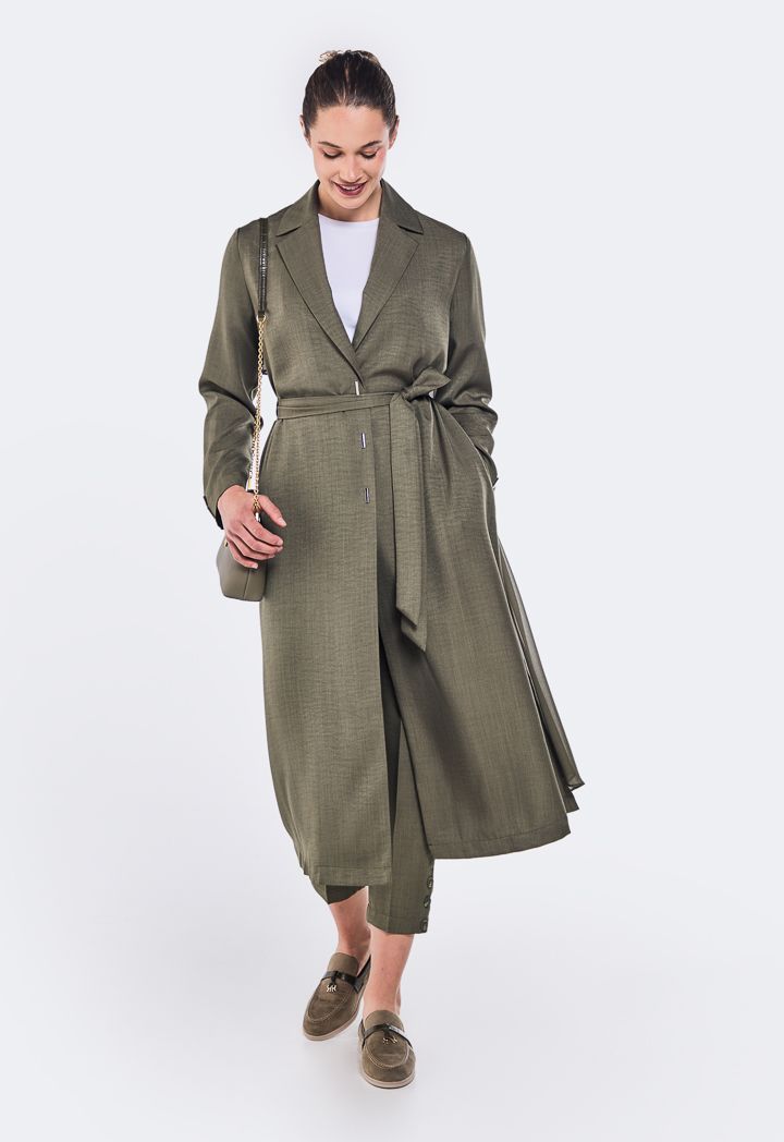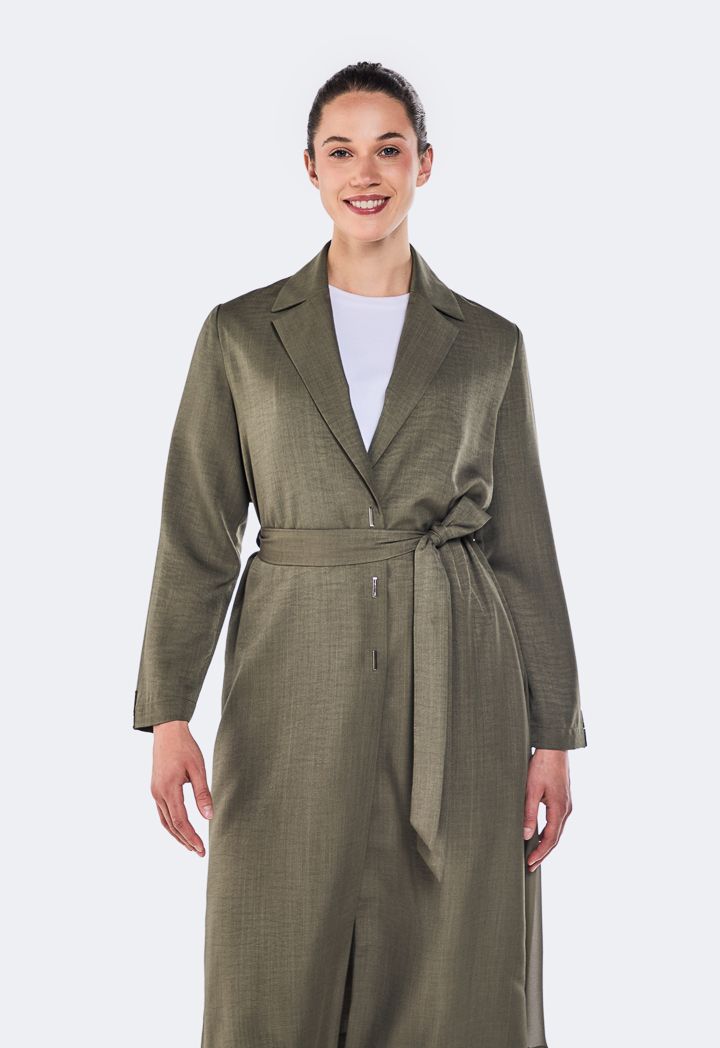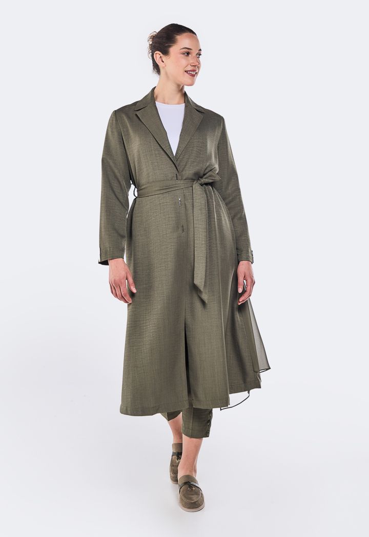 Design: Solid, Belted, Side Pockets, Back Overlay