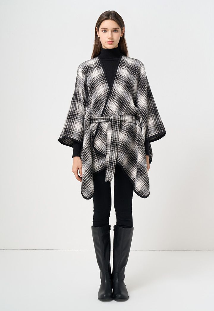 Accentuate your waist in style and in warmth with this elegant belted winter poncho.