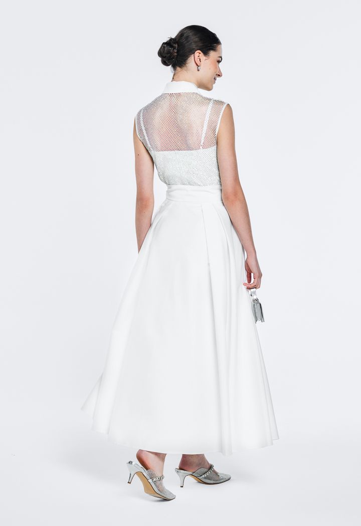 Belted Pleated Flared Skirt |