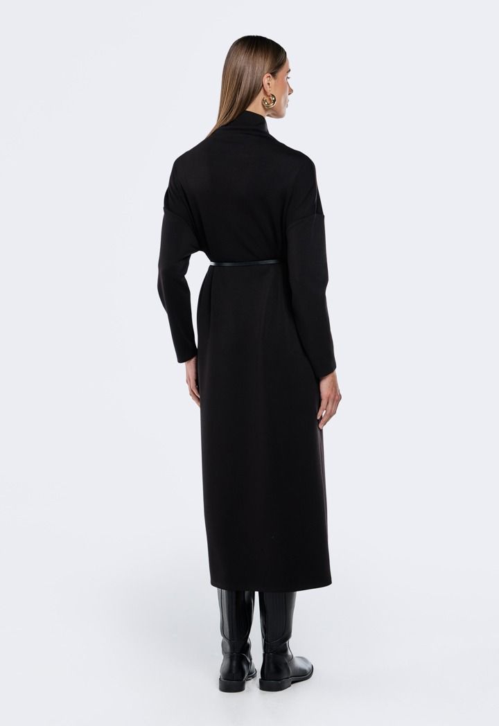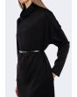 Design: Solid, Side Pockets, PU Leather Belt, Drop Shoulders