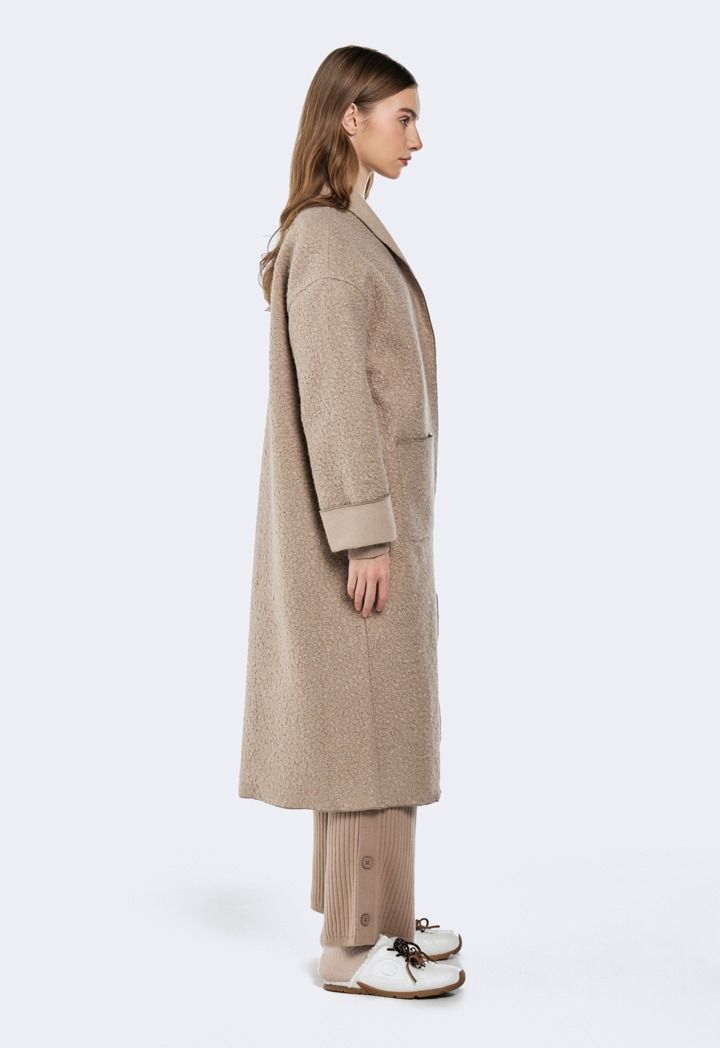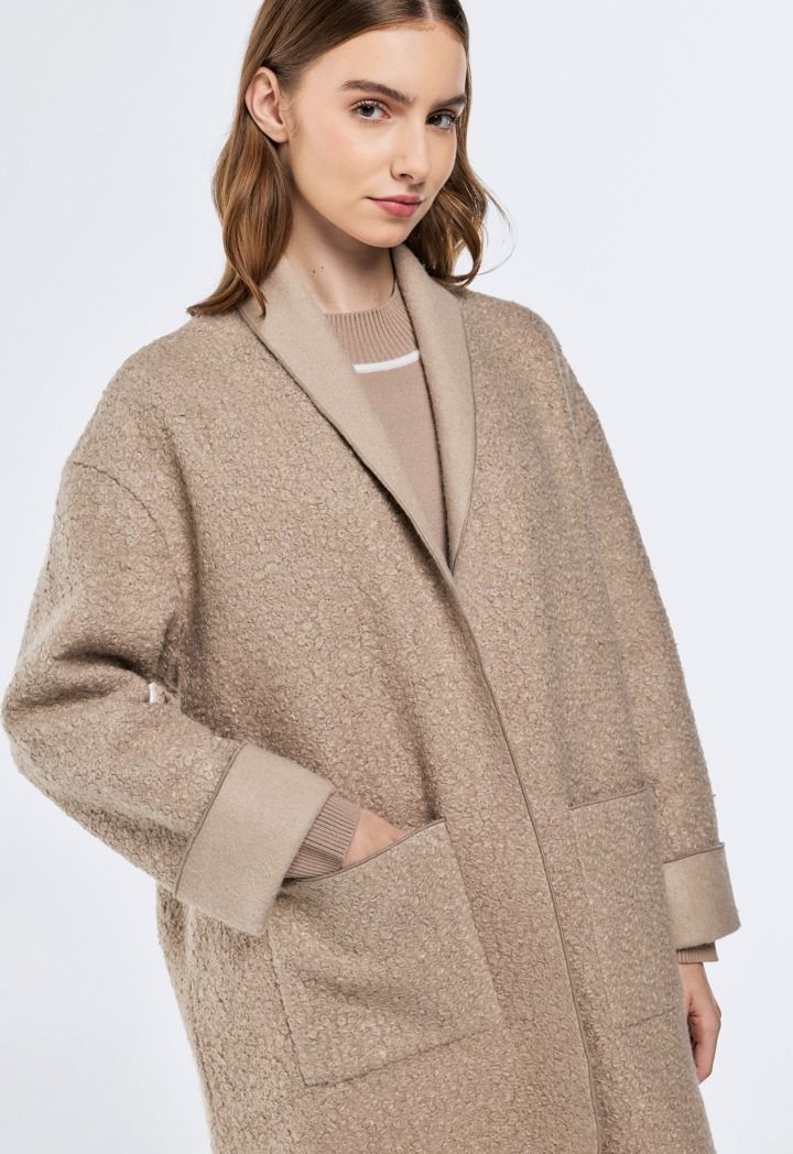 Design: Solid, Patch Pockets, Boucle, Drop Shoulders