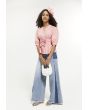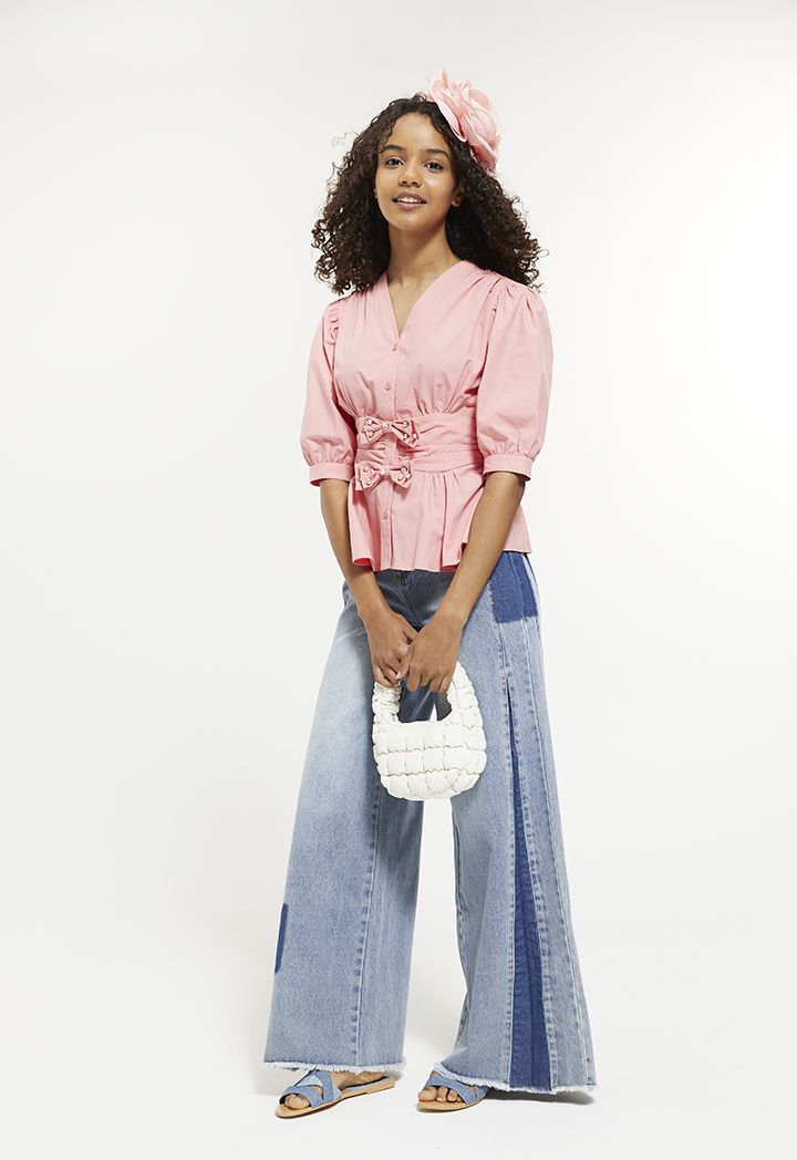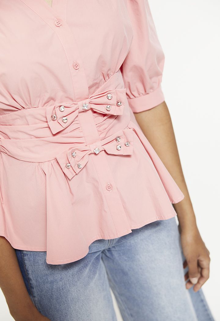 This top carries the perfect amount of color in its crystal and bow embellished design which makes it harder to not have.