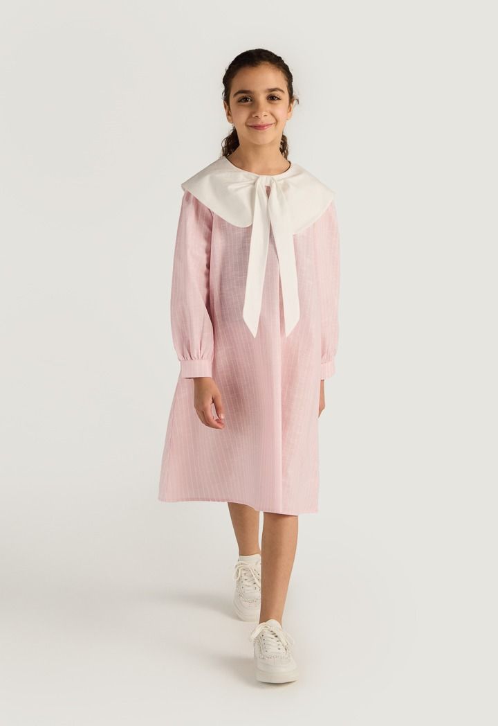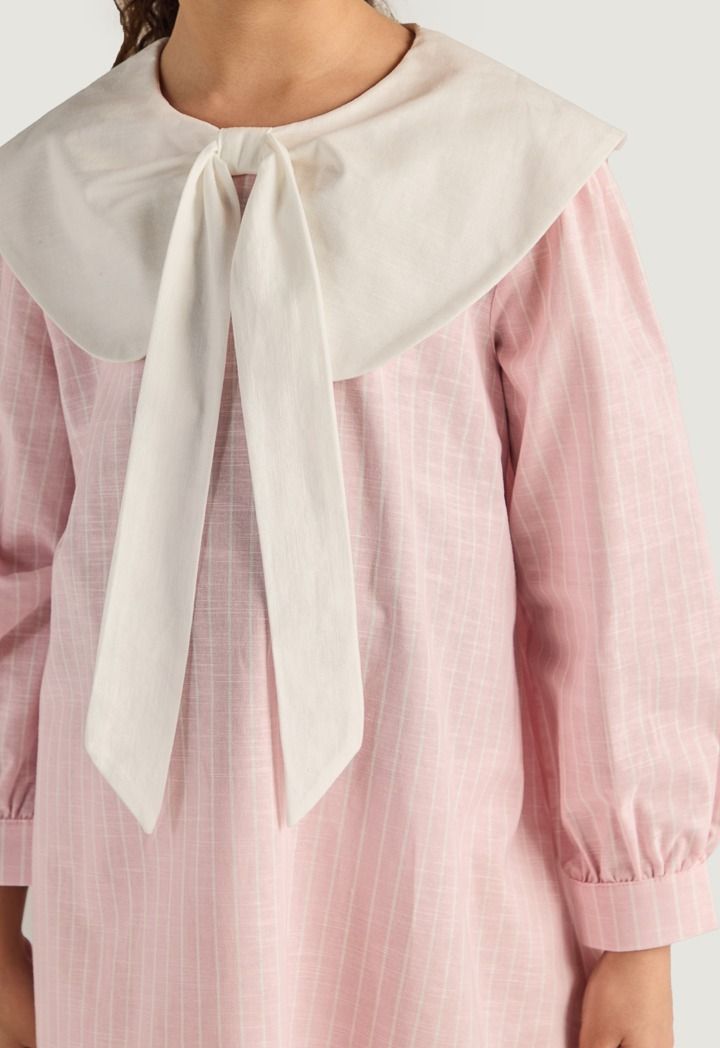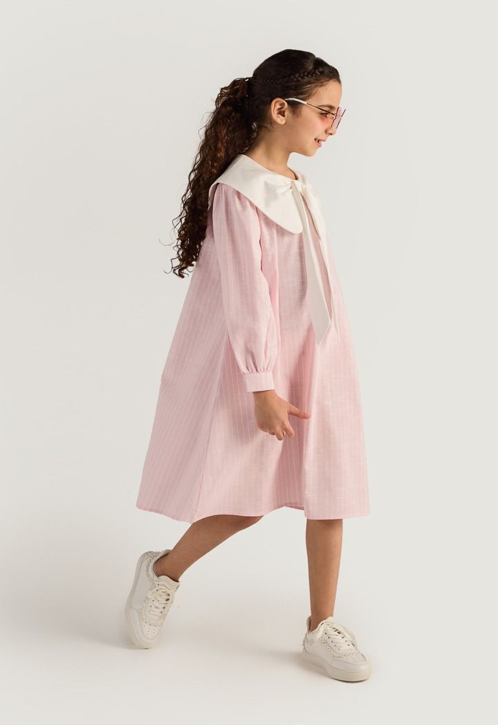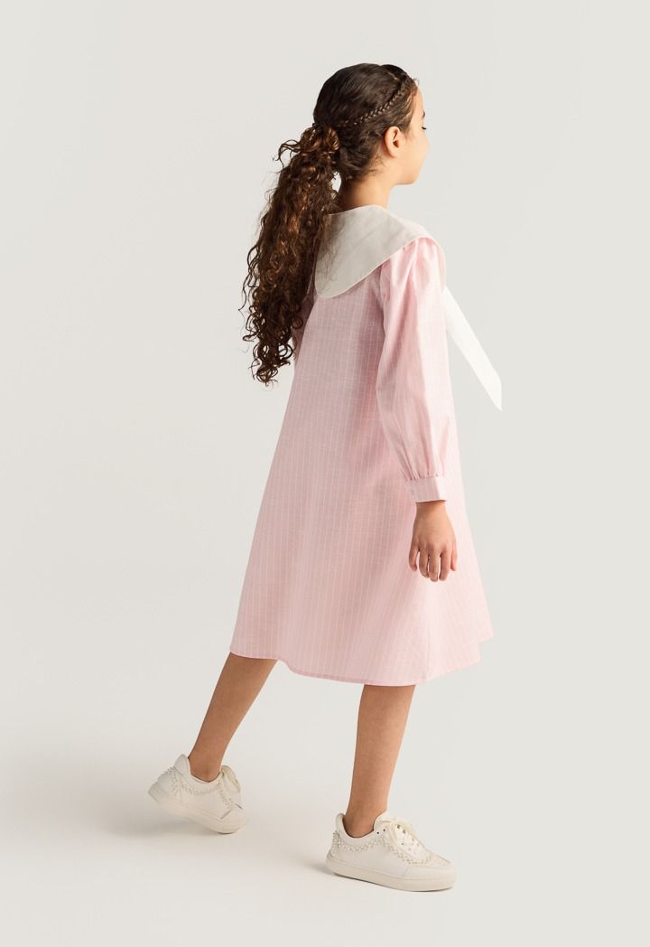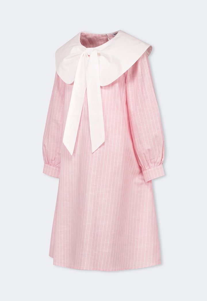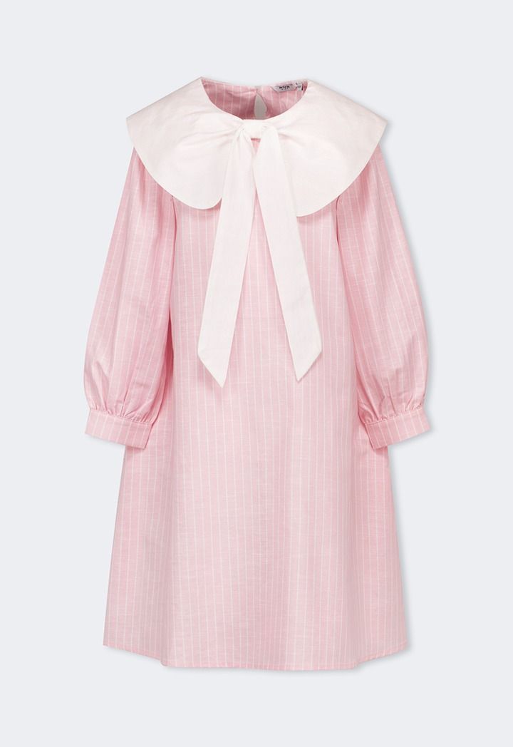Bow Collar Striped Dress |
