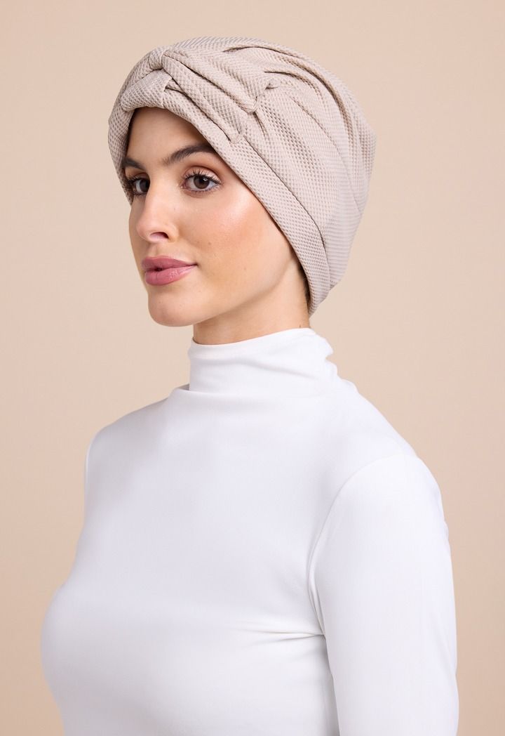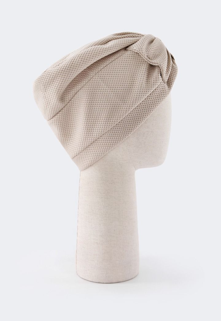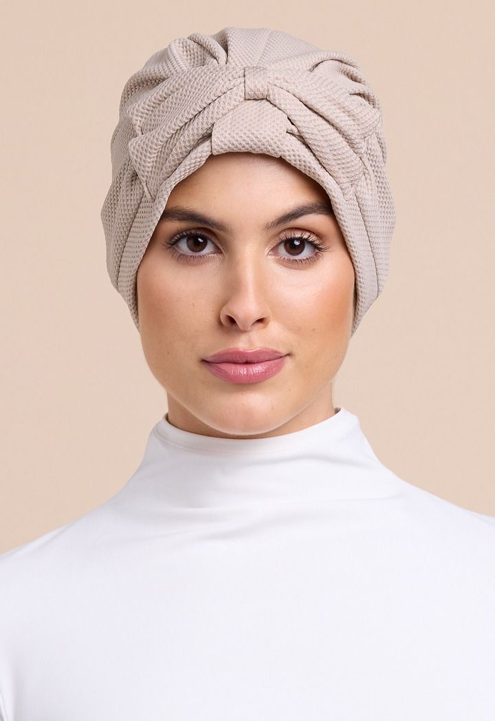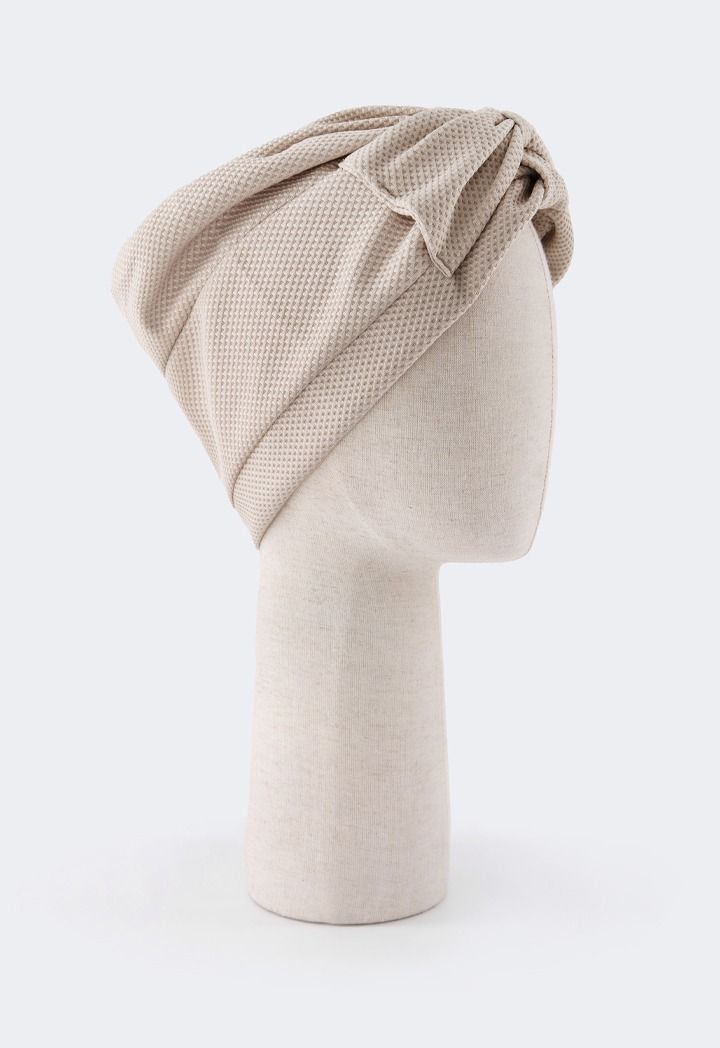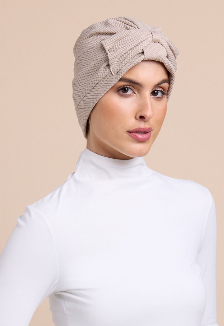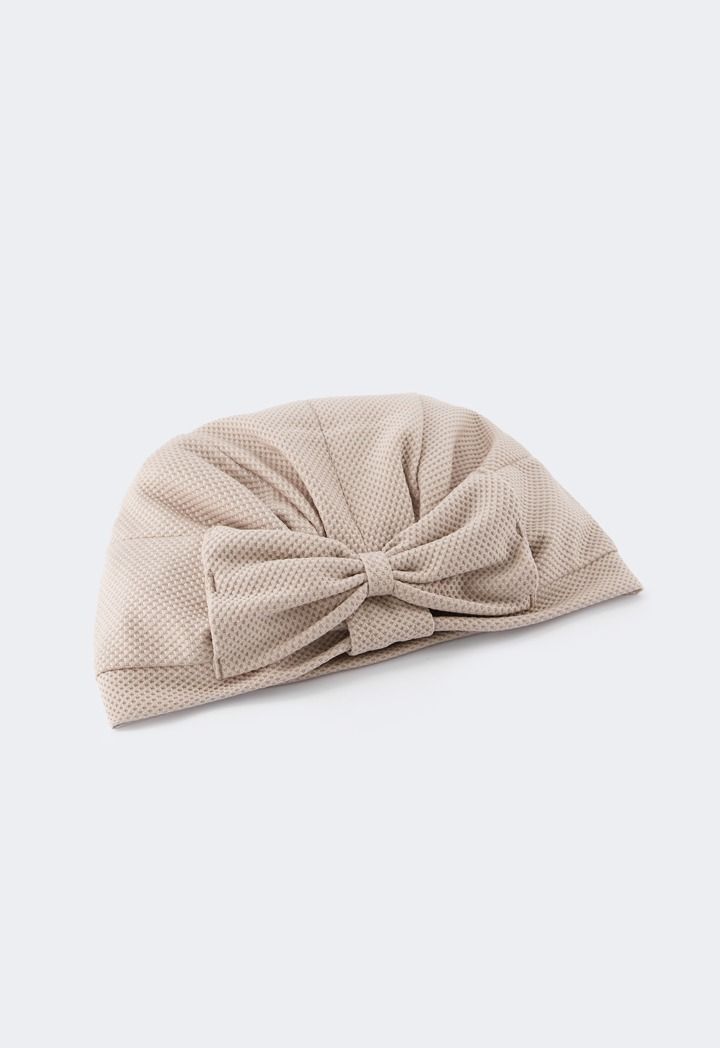 This turban is crafted from 100% cotton offering a comfortable fit with a textured embellished design and an elegant bow.