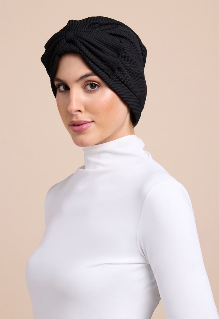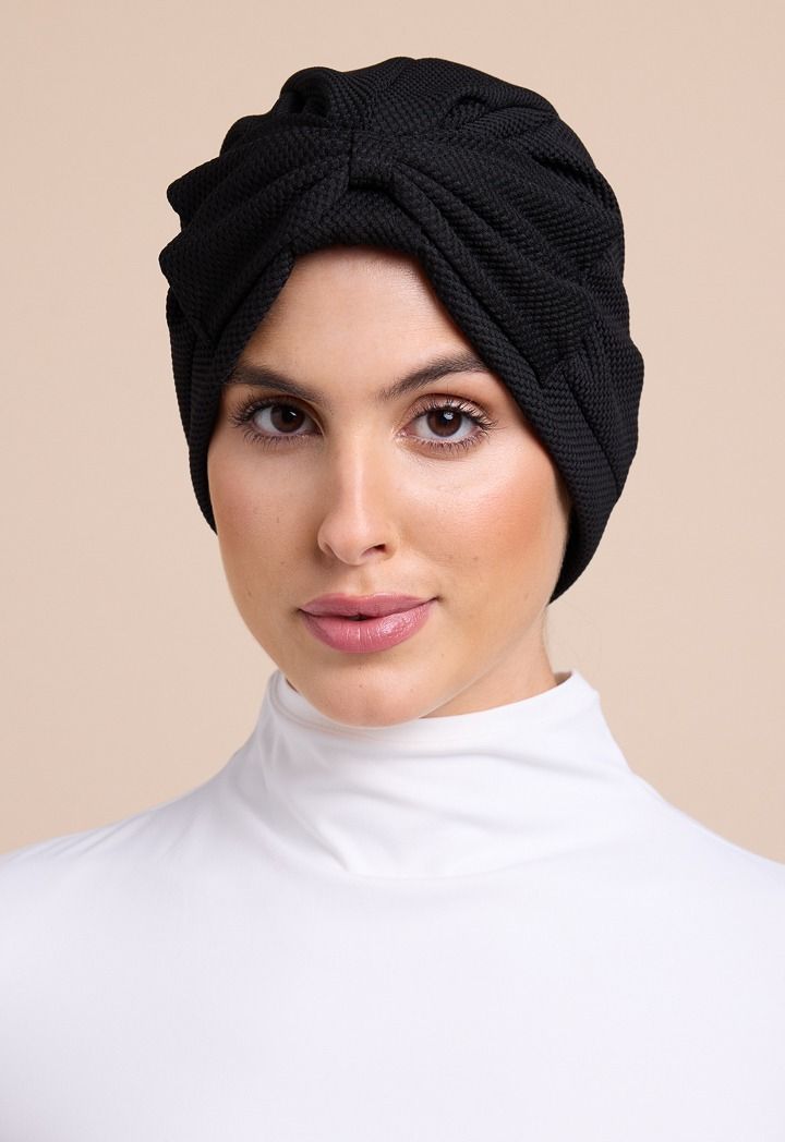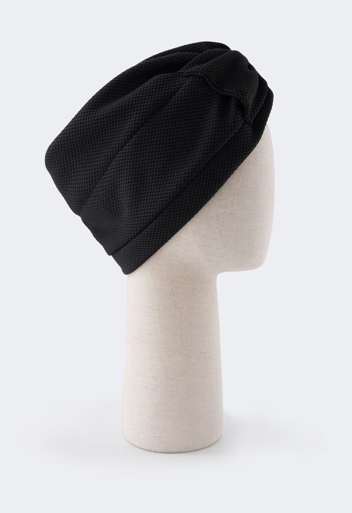 This turban is crafted from 100% cotton offering a comfortable fit with a textured embellished design and an elegant bow.