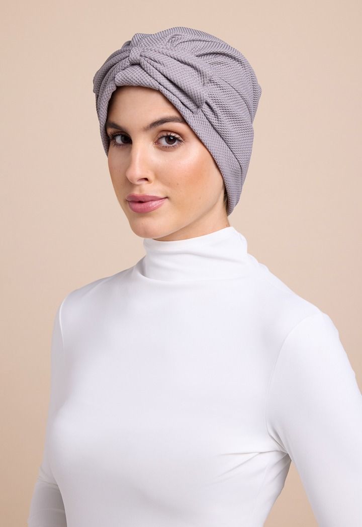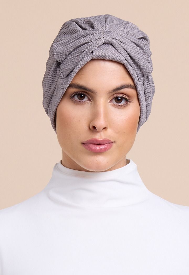 This turban is crafted from 100% cotton offering a comfortable fit with a textured embellished design and an elegant bow.