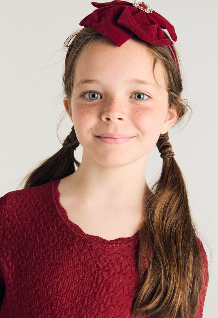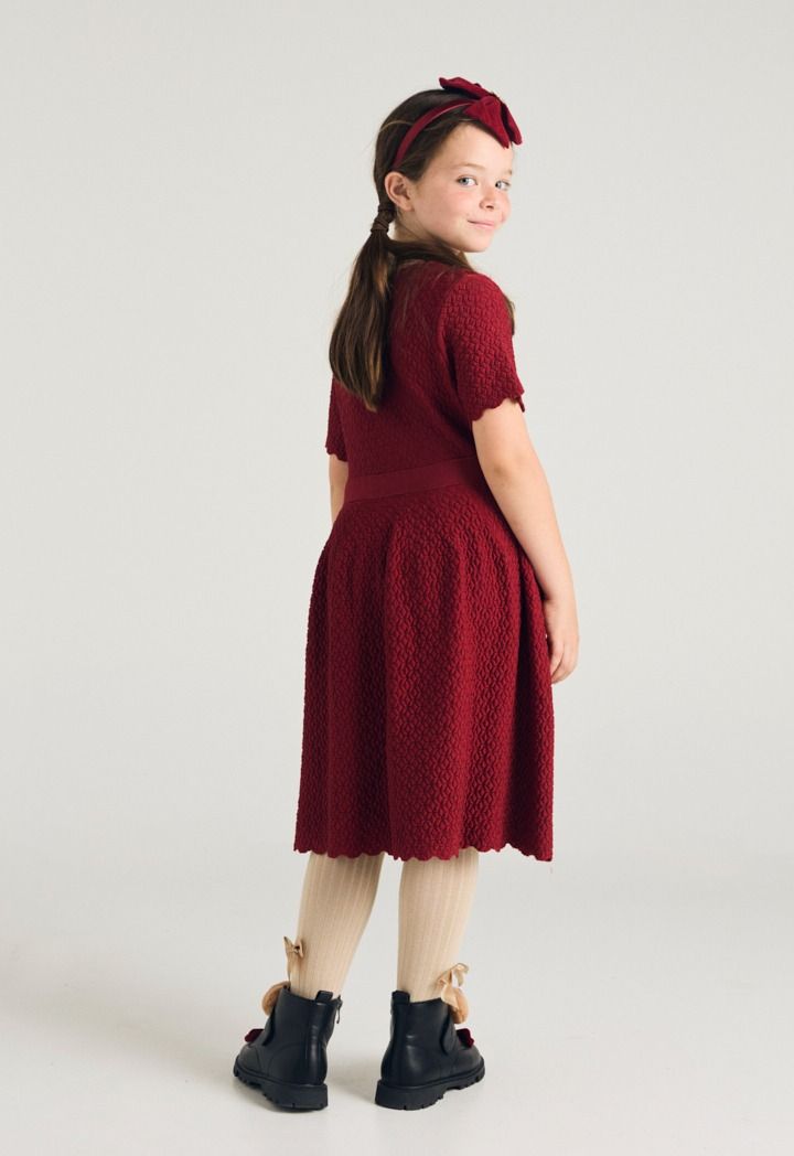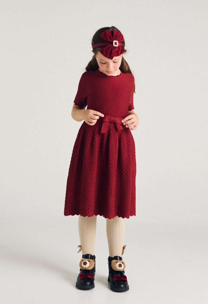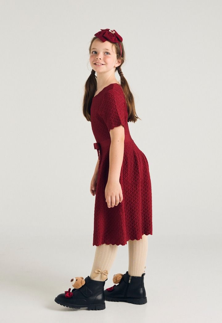 Cute knee-length dress for your little girl with short sleeves and Textured fabric.